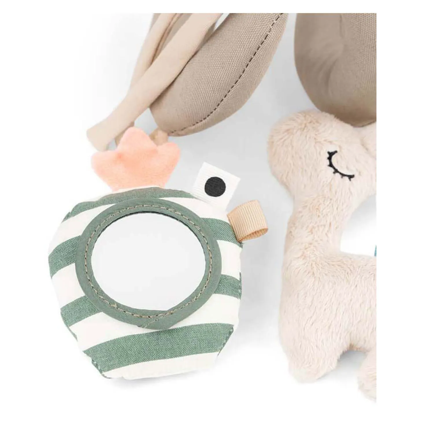• Geweldig om mee te nemen en kan met de zachte touwtjes aan het kinderbedje, autostoeltje, kinderwagen of kinderwagen worden vastgemaakt
