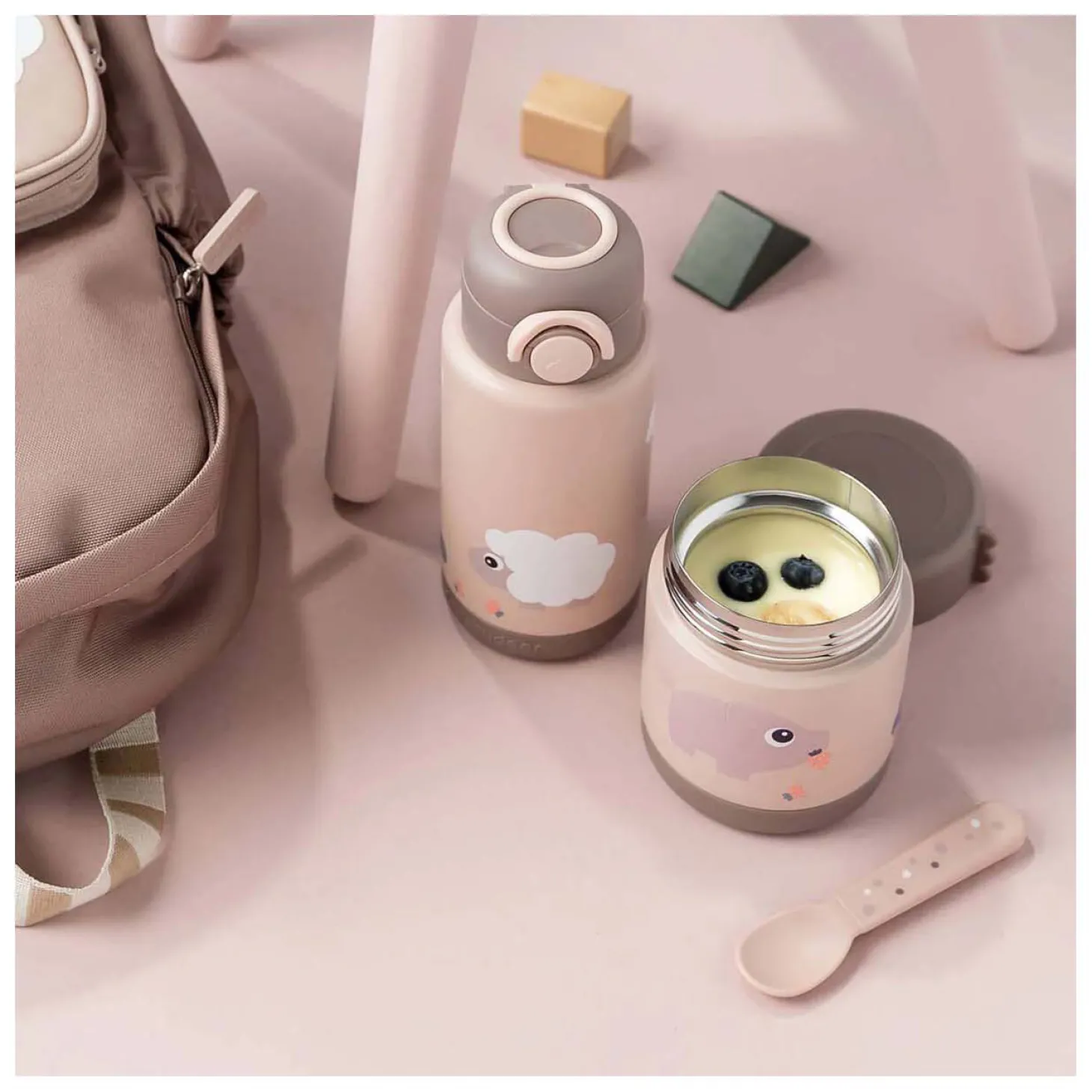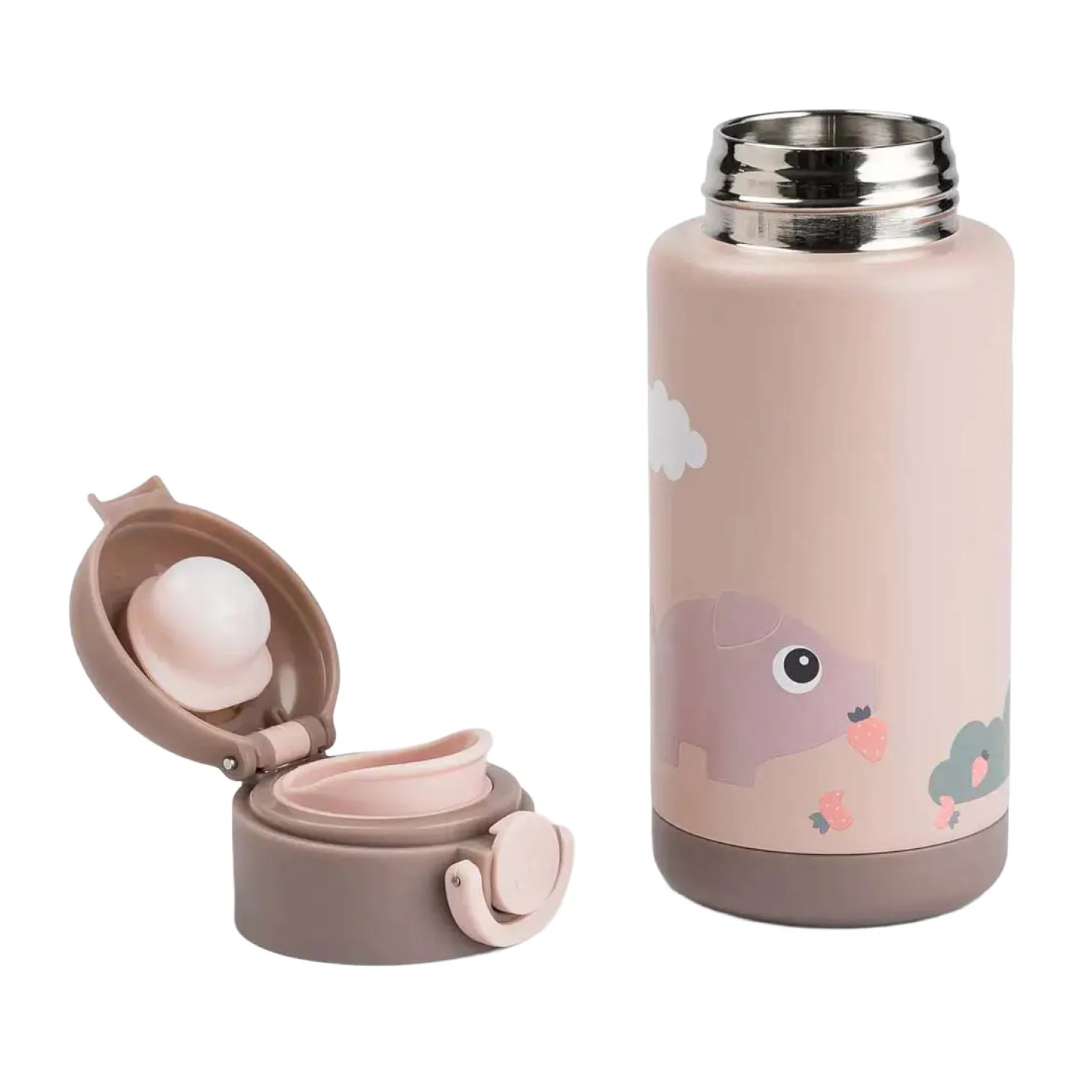 Doordachte details maken het gemakkelijk voor kleintjes om zelf te hanteren: een drukknopdeksel ontworpen voor kleine vingertjes, een veilige siliconen afsluiting om morsen in rugzakken te voorkomen en een praktische draaggreep voor onderweg. De fles houdt drankjes precies zoals je kleintje ze lekker vindt – warm of koud – tot wel zes uur lang onderweg. Met een inhoud van 340 ml is het de perfecte maat om fris te blijven, van een ochtendsnack tot een middagje spelen.