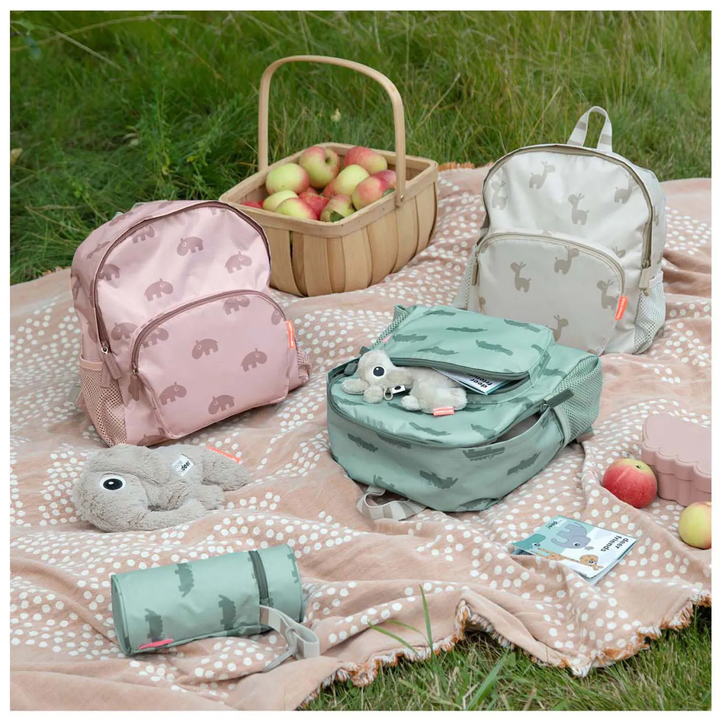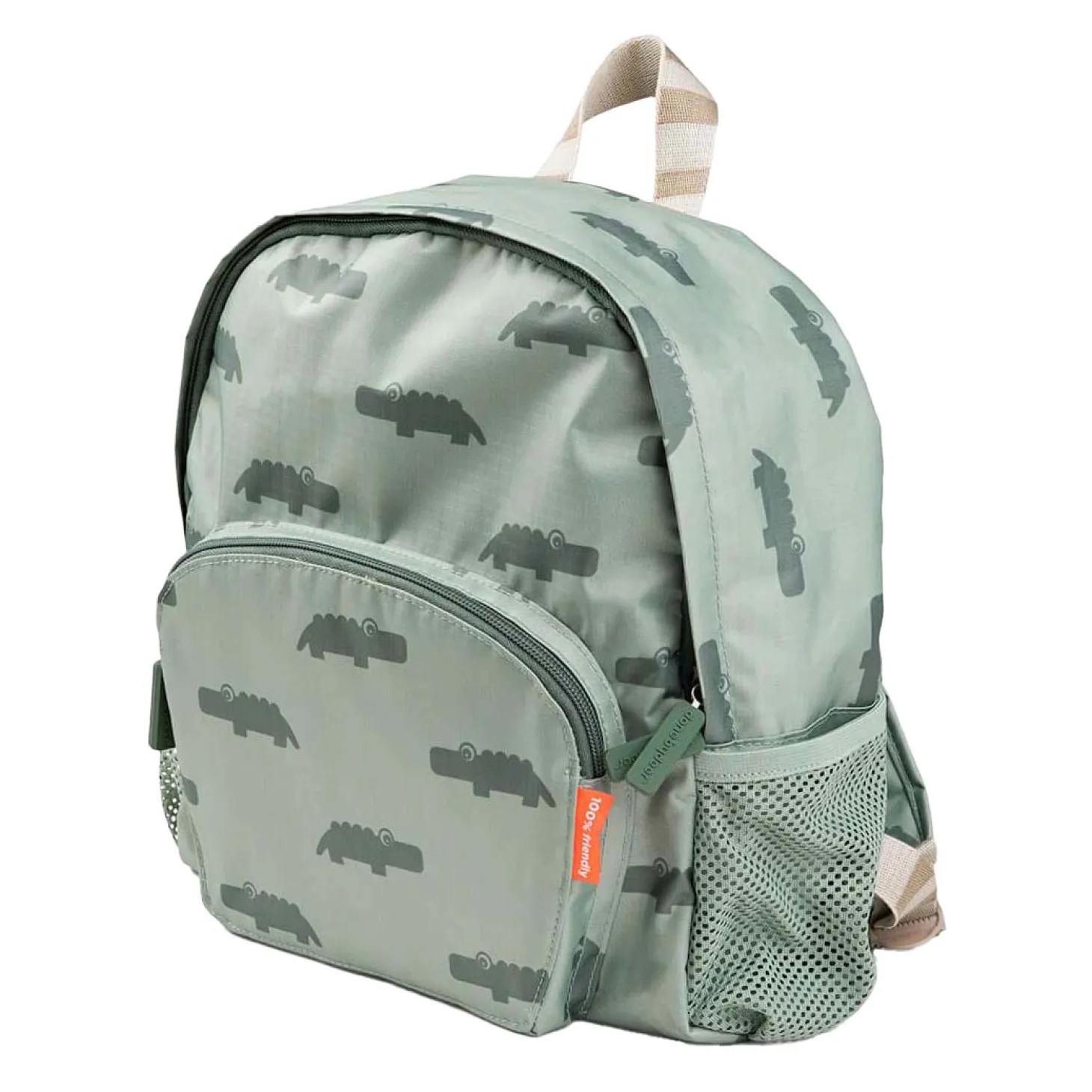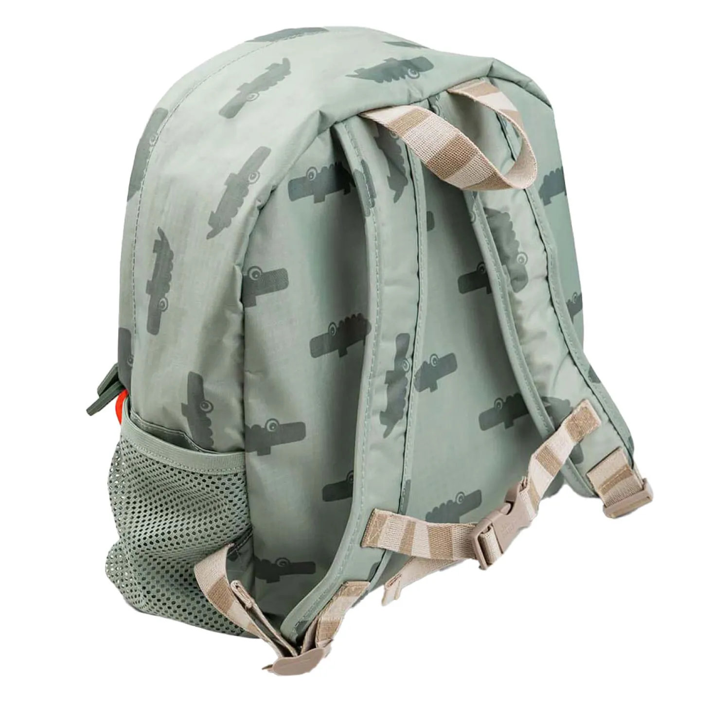De groene kinderrugzak is versierd met de vrolijke krokodil Croco. Hij is gemaakt van 100% polyester dat duurzaam en weerbestendig is. Aan de binnenkant zit een leuk naamplaatje.