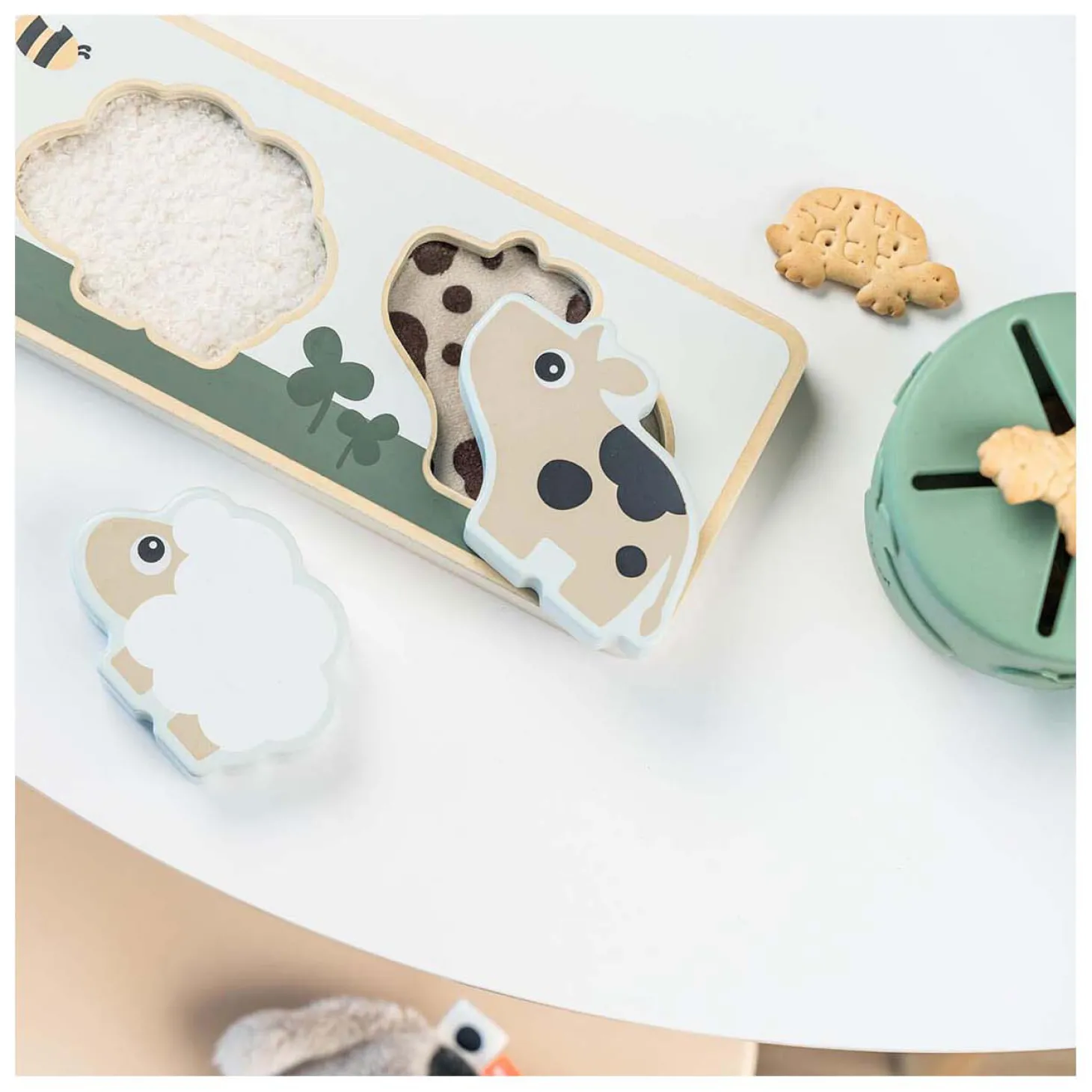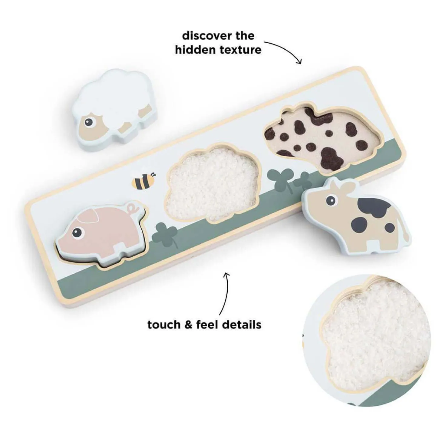 Het is gemaakt van verantwoord hout en verf op waterbasis, dus volledig veilig voor je kind. Met leuke kleuren en hoge contrasten biedt het visuele stimulatie die je kleintje zal vermaken. Leuk en leerzaam speelgoed dat de creativiteit stimuleert en het vroege leren ondersteunt.