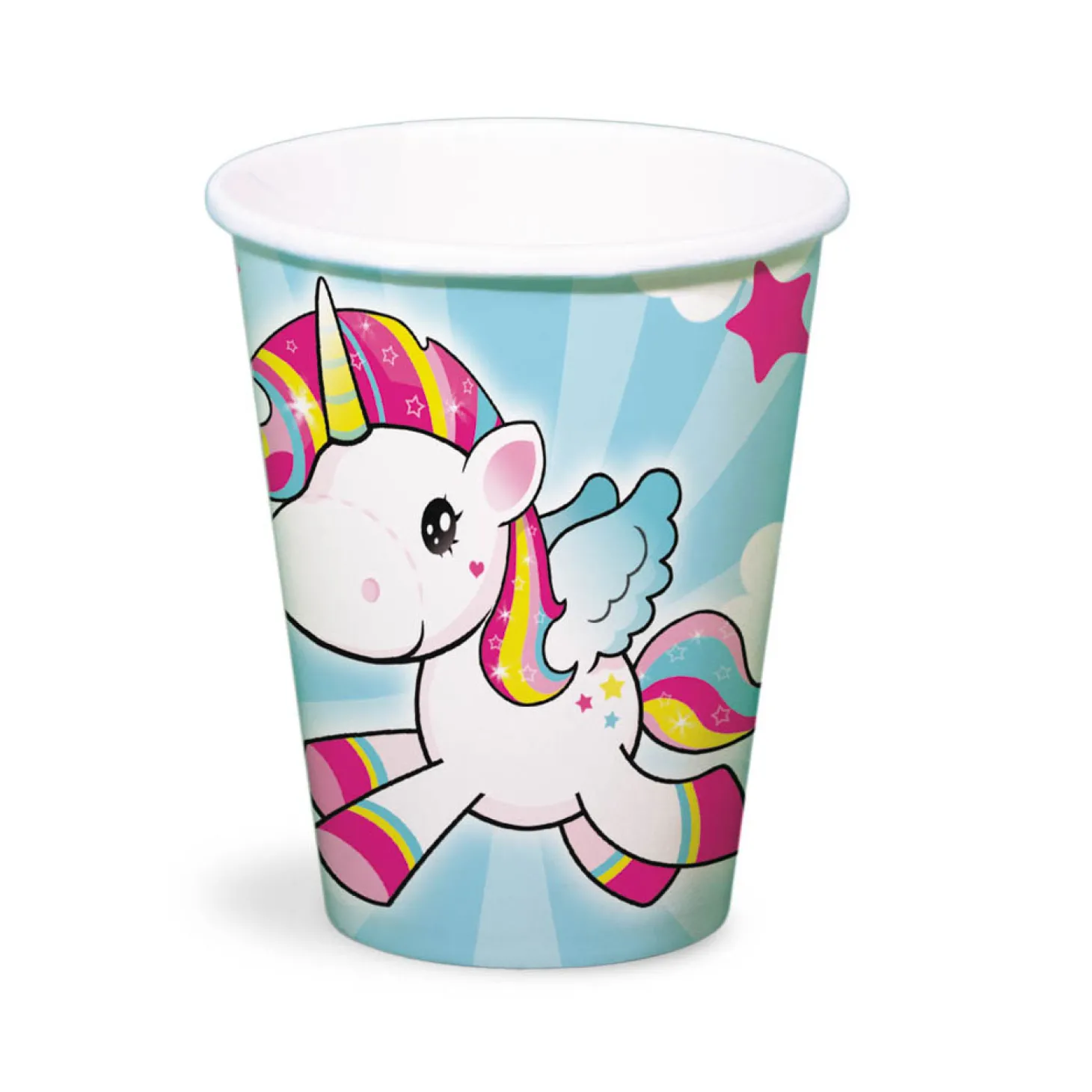 Maak je Eenhoorn feest compleet met deze bekers. De set bevat 8 wegwerpbekertjes van karton met een afbeelding van een eenhoorn erop. Inhoud: 250 ml.