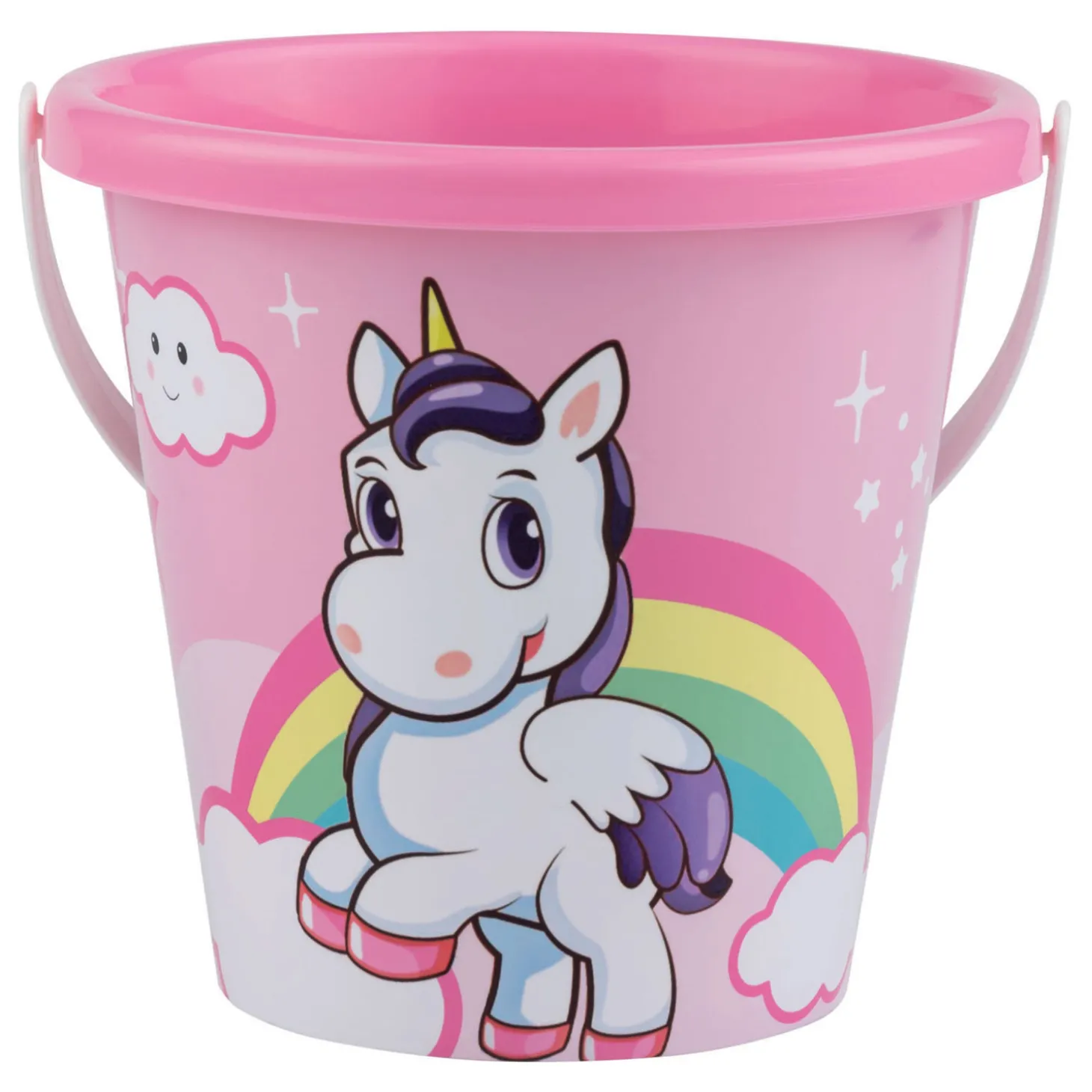 Deze Eenhoorn Emmer is ideaal voor op het strand, zwembad of in de tuin. Verzamel al je schatten erin! De roze emmer heeft een vrolijke afbeelding van een unicorn, wolkjes en een mooie regenboog. Gemaakt van stevig kunststof.