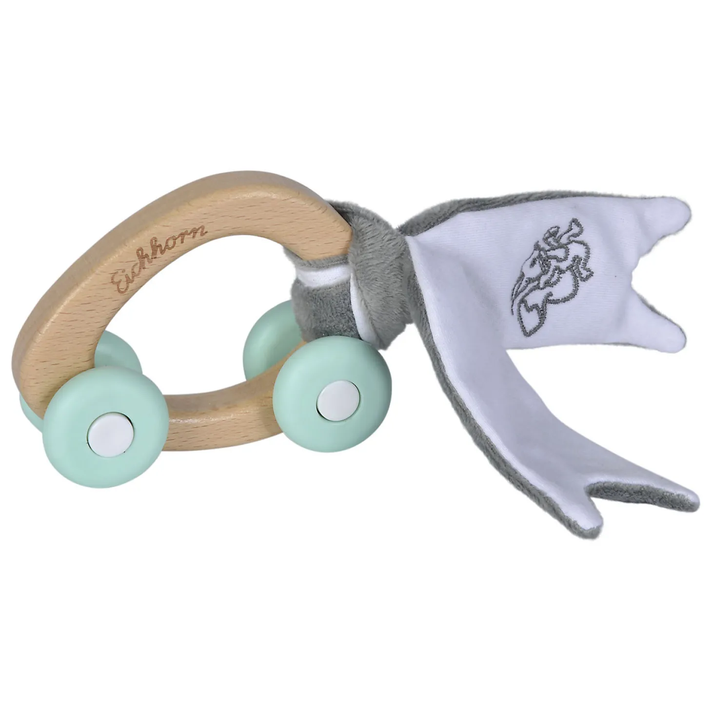Dit schattige autootje is gemaakt van verschillende materialen: de auto zelf is van hout, de wielen van rubber en het doekje is een pluche stof. Het is 100% FSC gecertificeerd beukenhout. Dankzij de verschillende materialen is het fijn om te voelen te ontdekken voor een baby.
