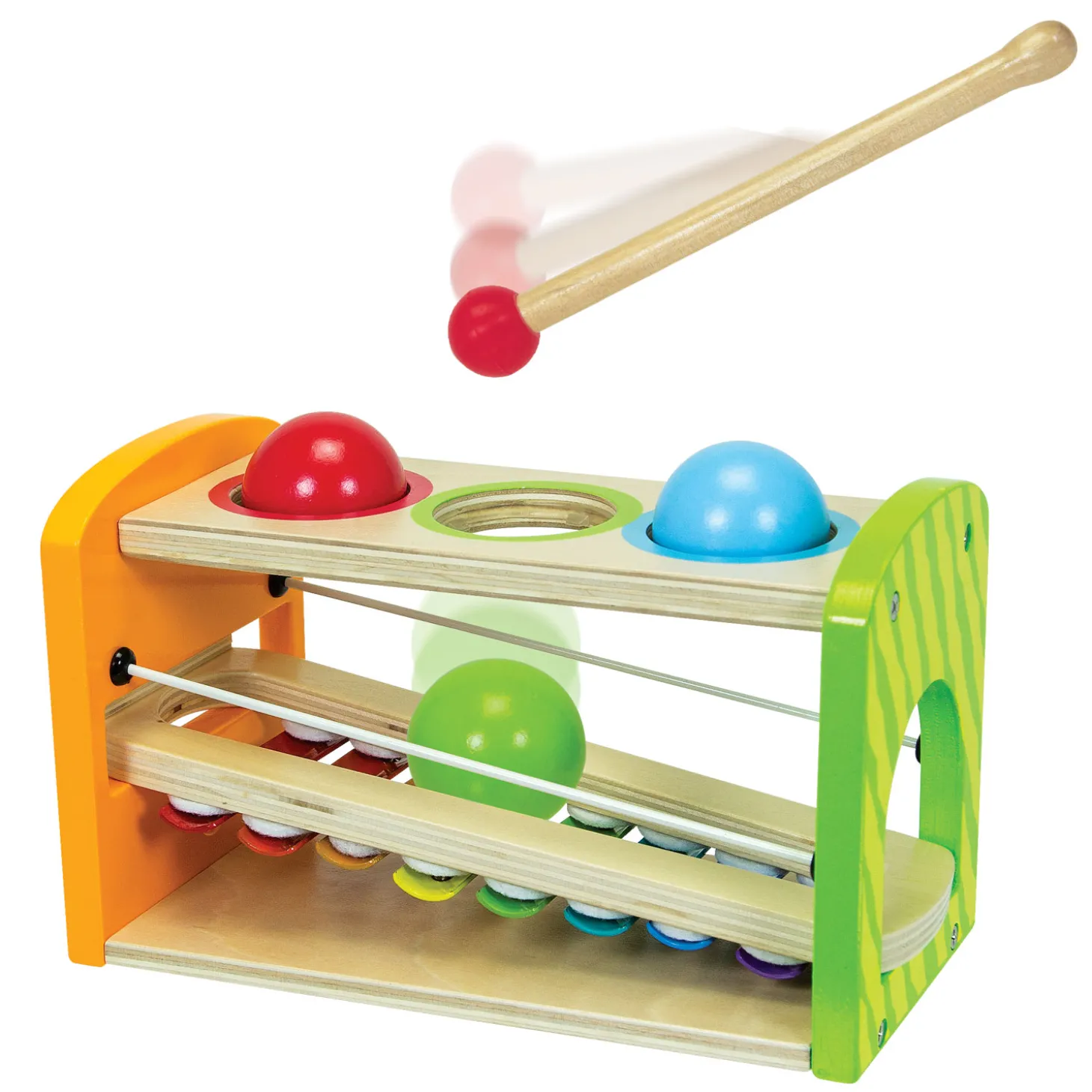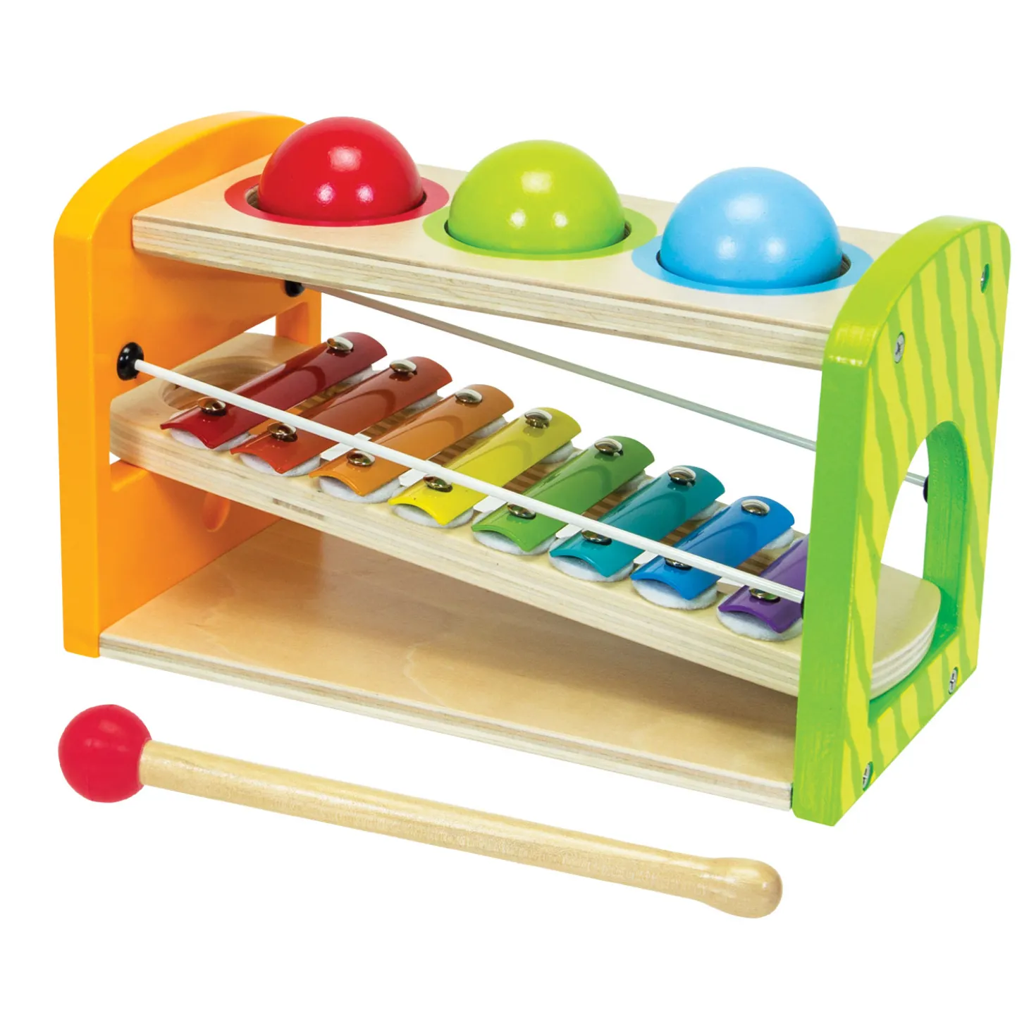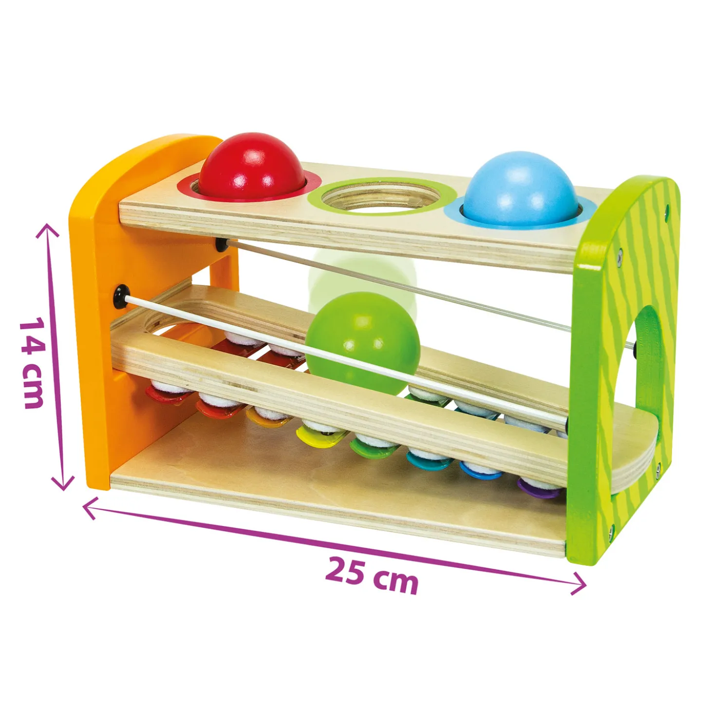 De Eichhorn hamerbank stimuleert de motoriek en maakt kinderen bewust van oorzaak-gevolgrelaties. De xylofoon zorgt voor creativiteit in het maken van muziek.