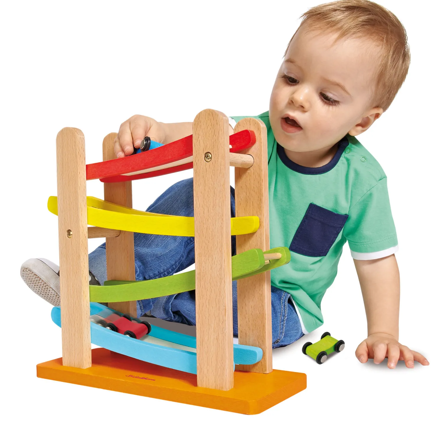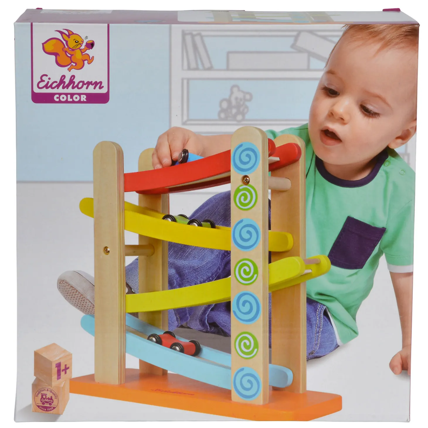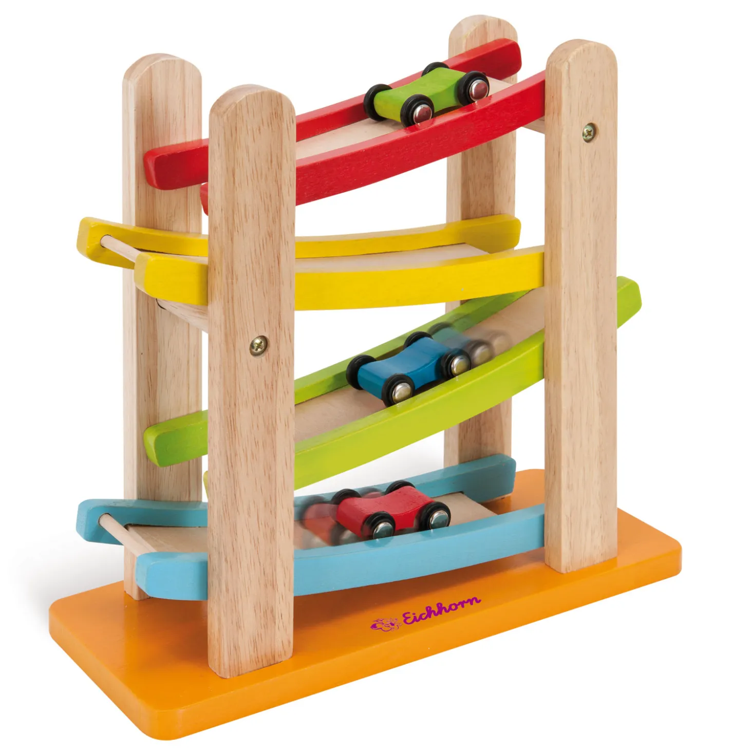 Maak een spannende rit met auto’s in deze houten autobaan van Eichhorn. Rijd met de autootjes op rubberen wielen over de diagonale banen en race naar beneden! De autobaan heeft 4 diagonale banen en bevat 3 kleine autootjes. Spelen met de autobaan stimuleert oog-handcoördinatie en inzicht in oorzaak-gevolgrelaties.