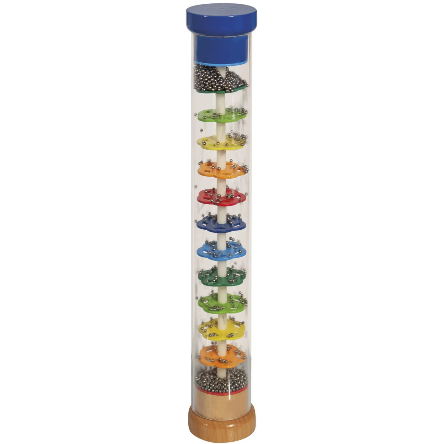 Draai deze Eichhorn Houten regenmaker om en zie de balletjes zachtjes naar beneden rollen. De zachte regendruppelgeluiden geven je een fijn gevoel. De vorm is speciaal ontworpen voor de handjes van een peuter. De regenmaker is ook te gebruiken als een rammelaar. Geschikt vanaf 1 jaar.