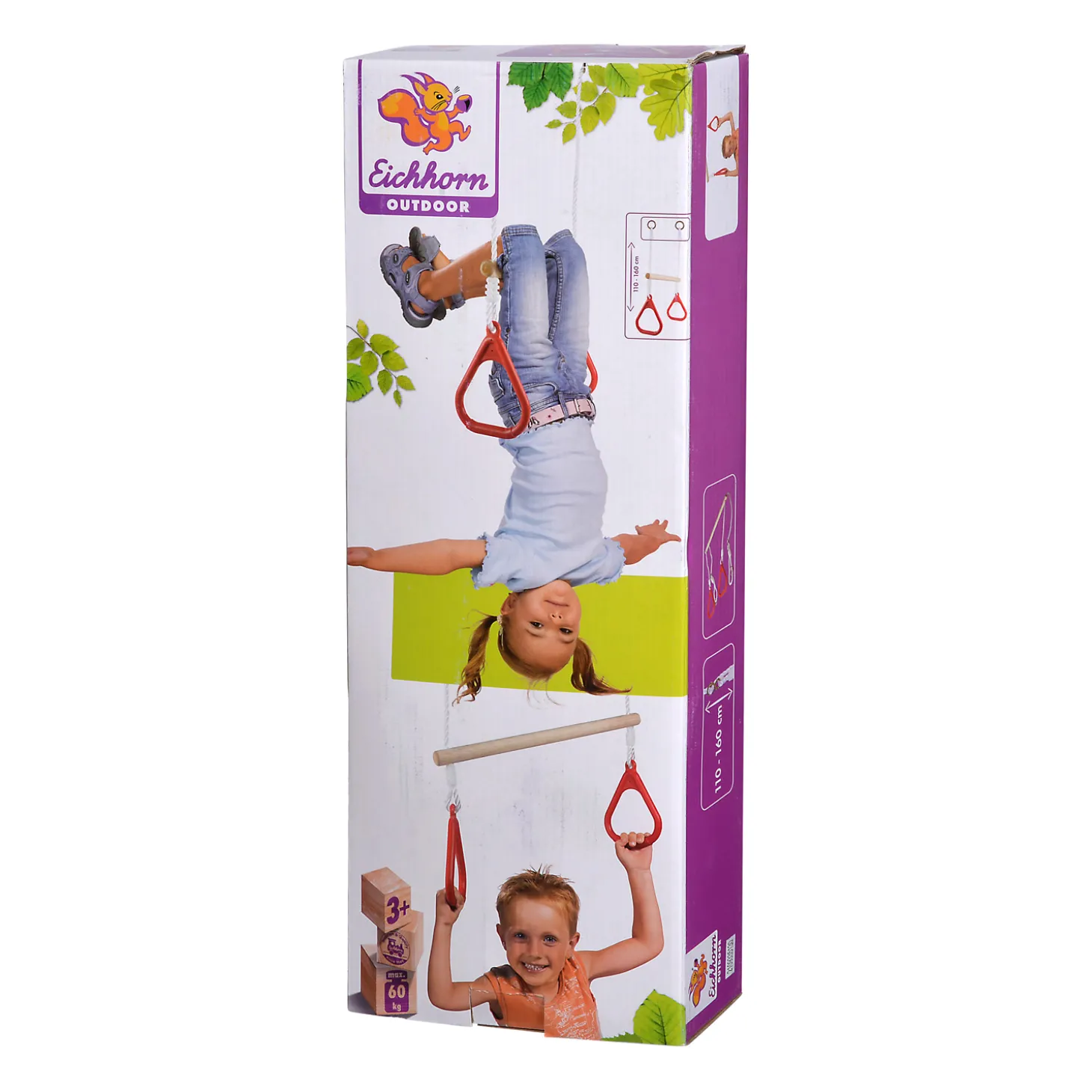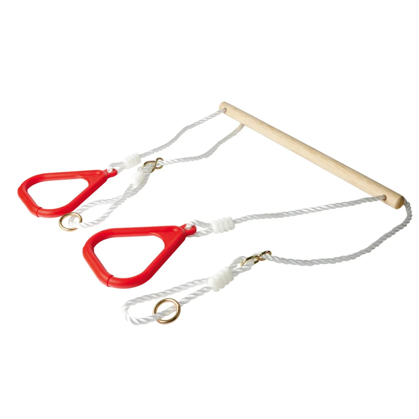 De houten trapeze is in hoogte verstelbaar van 110 cm tot 160 cm en heeft een maximale belastbaarheid van 60 kilogram. Geschikt voor kinderen vanaf 3 jaar oud.
