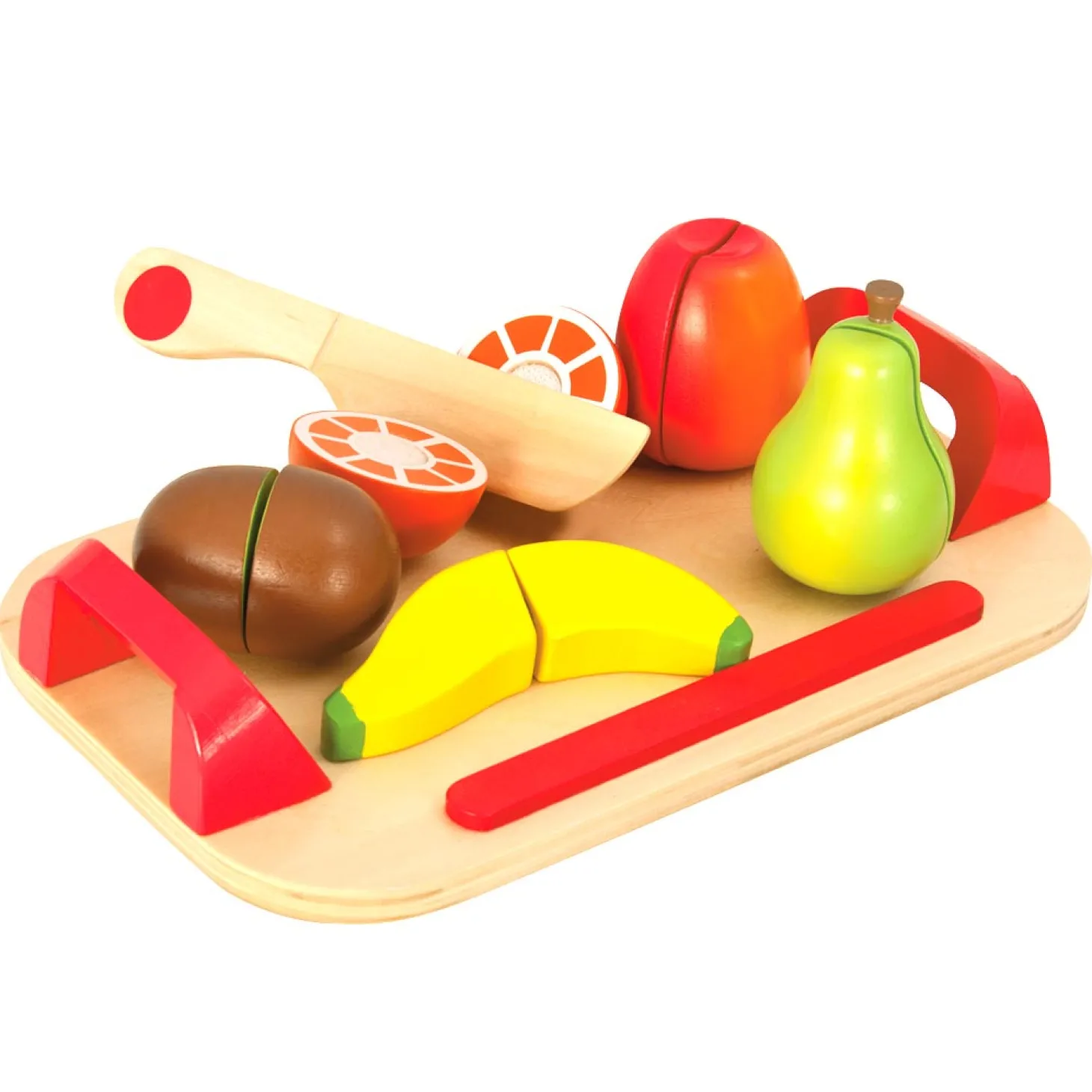 Maak de lekkerste fruitsalade klaar. Met deze Eichhorn snijplank met fruit kun je alvast oefenen voor het echte werk. Je hebt een appel, peer, banaan, kiwi en een sinaasappel. Leg het fruit op de snijplank en snij ze doormidden met het houten mes. Met het klittenband kun je het fruit weer gemakkelijk aan elkaar maken. Inhoud: 2 halve kiwi’s, 2 halve bananen, 2 halve peren, 2 halve appels, 2 halve sinaasappels, 1 mes, 1 dienblad/snijplank.