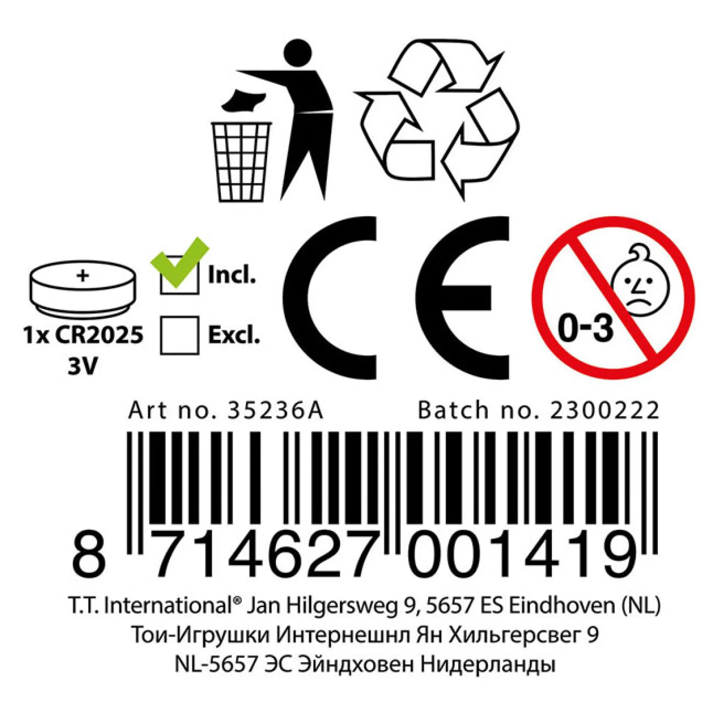 - Waarschuwing: Niet geschikt voor kinderen onder de 3 jaar ivm kleine onderdelen.