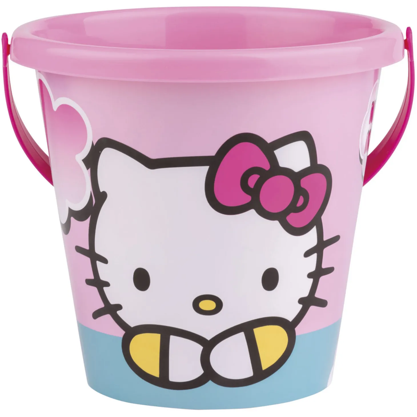 Roze strandemmer met Hello Kitty decoratie. Vul het emmertje met zand of water en neem de emmer eenvoudig met je mee dankzij het knalroze handvat.