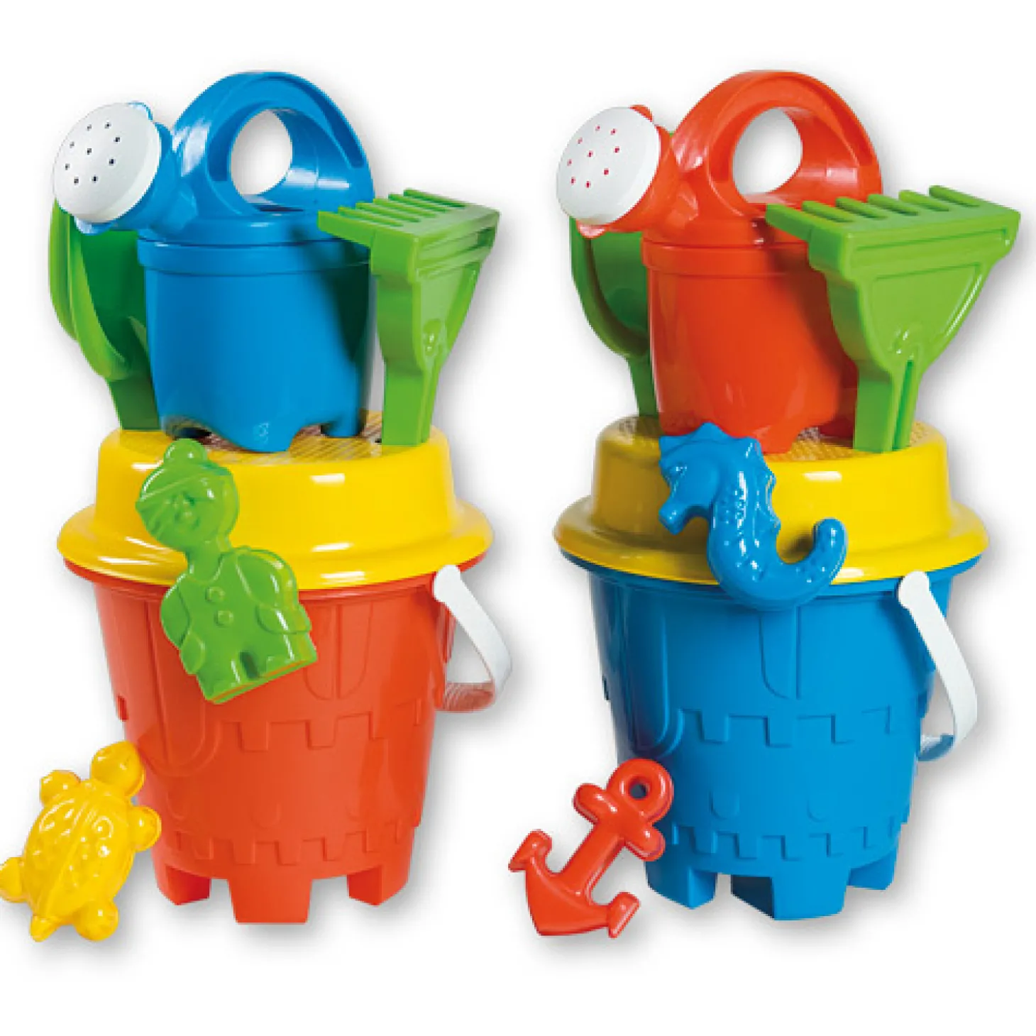 De emmer heeft de vorm van een kasteeltje en een diameter van 15 centimeter. Gemaakt van stevig kunststof. Geschikt voor kinderen vanaf 12 maanden oud.Prijs per stuk, verschillende uitvoeringen/kleuren worden door elkaar geleverd.