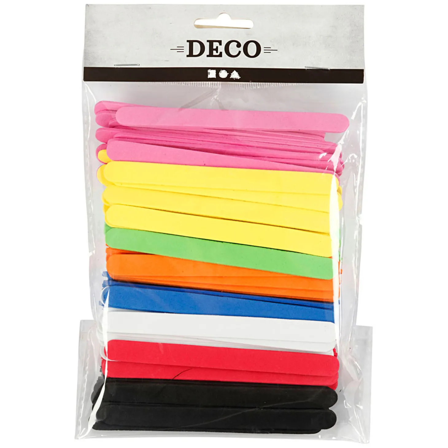 Deze zachte ijsstokjes kunnen worden gebogen en in elkaar worden gerold en zijn daardoor ideaal voor het maken van veel dingen die gewone houten ijsstokjes niet kunnen. Probeer b.v. slingers, die ronde voorwerpen bedekken of ermee vlechten. Als je ze moet lijmen, gebruik dan Multi Clear-lijm.