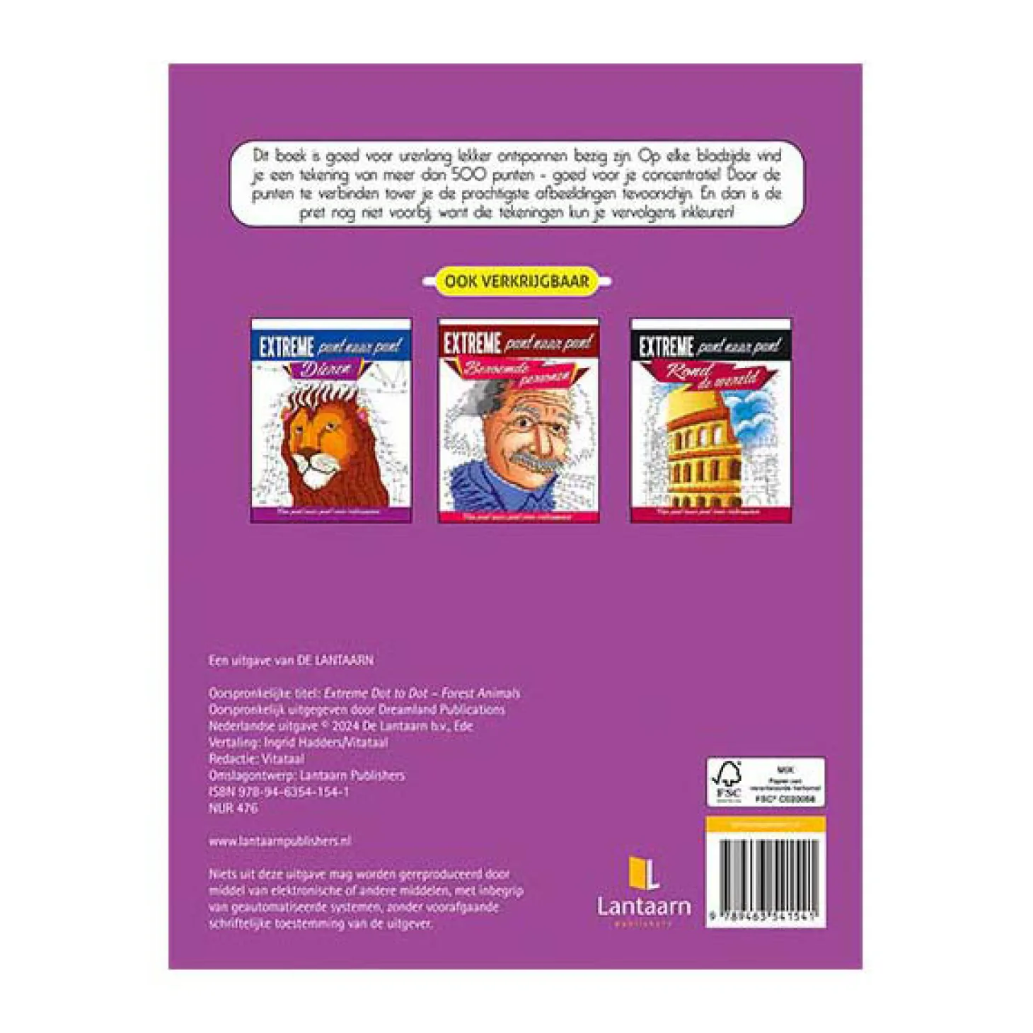 Met soms wel 900 te verbinden punten zijn deze platen extreem te noemen! Kom tot rust, concentreer je en verbind alle punten. Een prachtige afbeelding komt tevoorschijn, die vervolgens ook nog in te kleuren is. De pagina’s zijn enkelzijdig bedrukt op stevig papier.