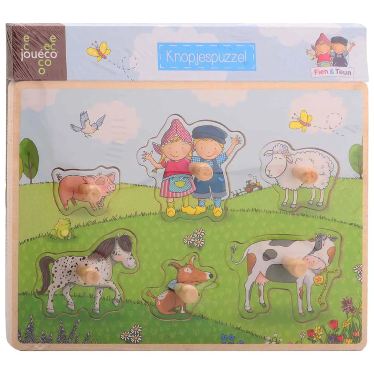 •Houten knopjespuzzel met Fien, Teun en boerderijdieren