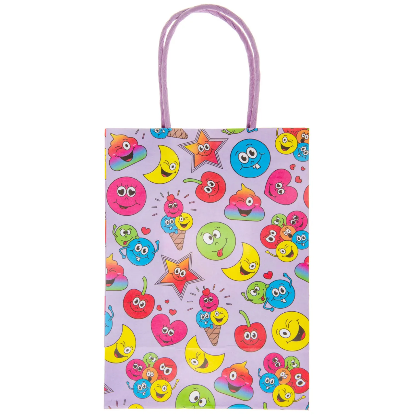 Vrolijk geschenktasje met allerlei lachgezichtjes. Ideaal om een cadeautje voor een jarige in te verpakken. Het geschenktasje is 16 bij 22 bij 9 centimeter groot en gemaakt van 100 gsm papier.