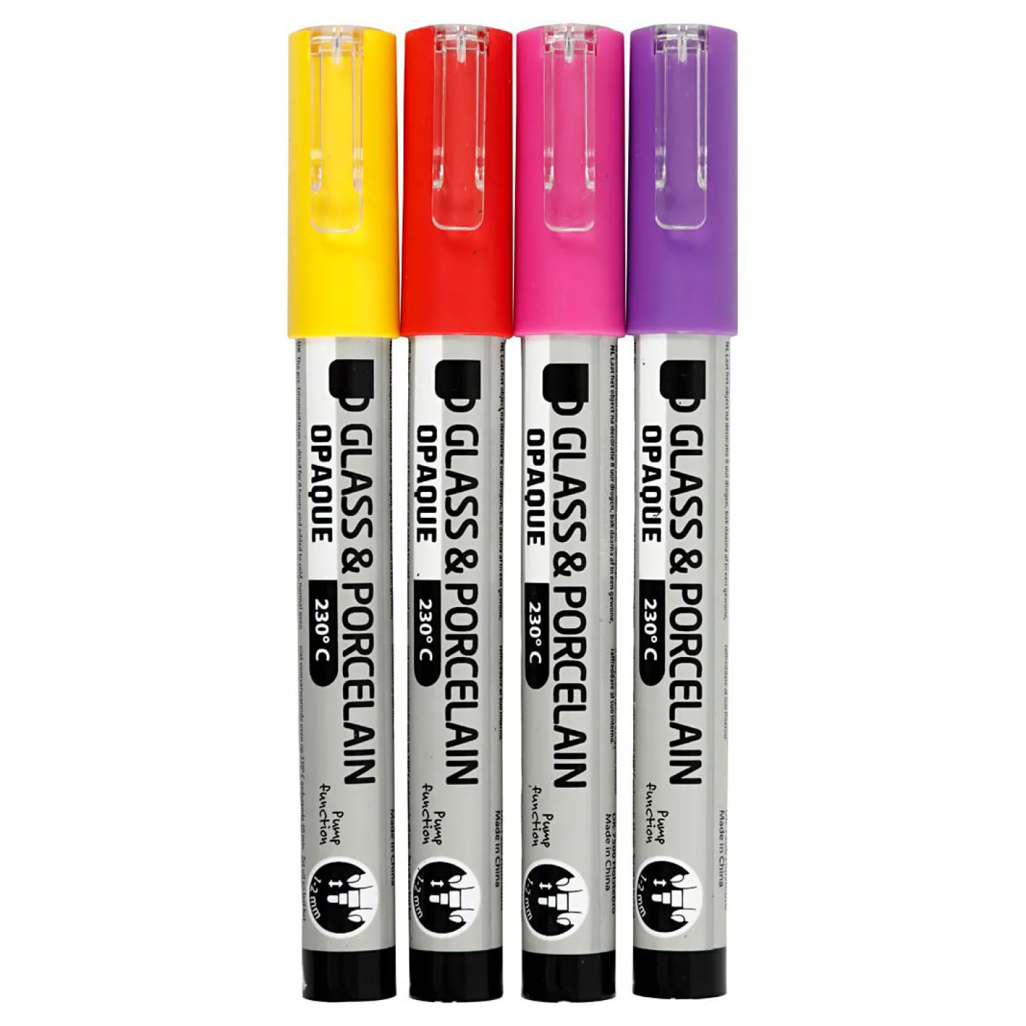 Glas- & Porseleinstiften Dekkend Oranje/Paars/Rood/Geel, 4st.