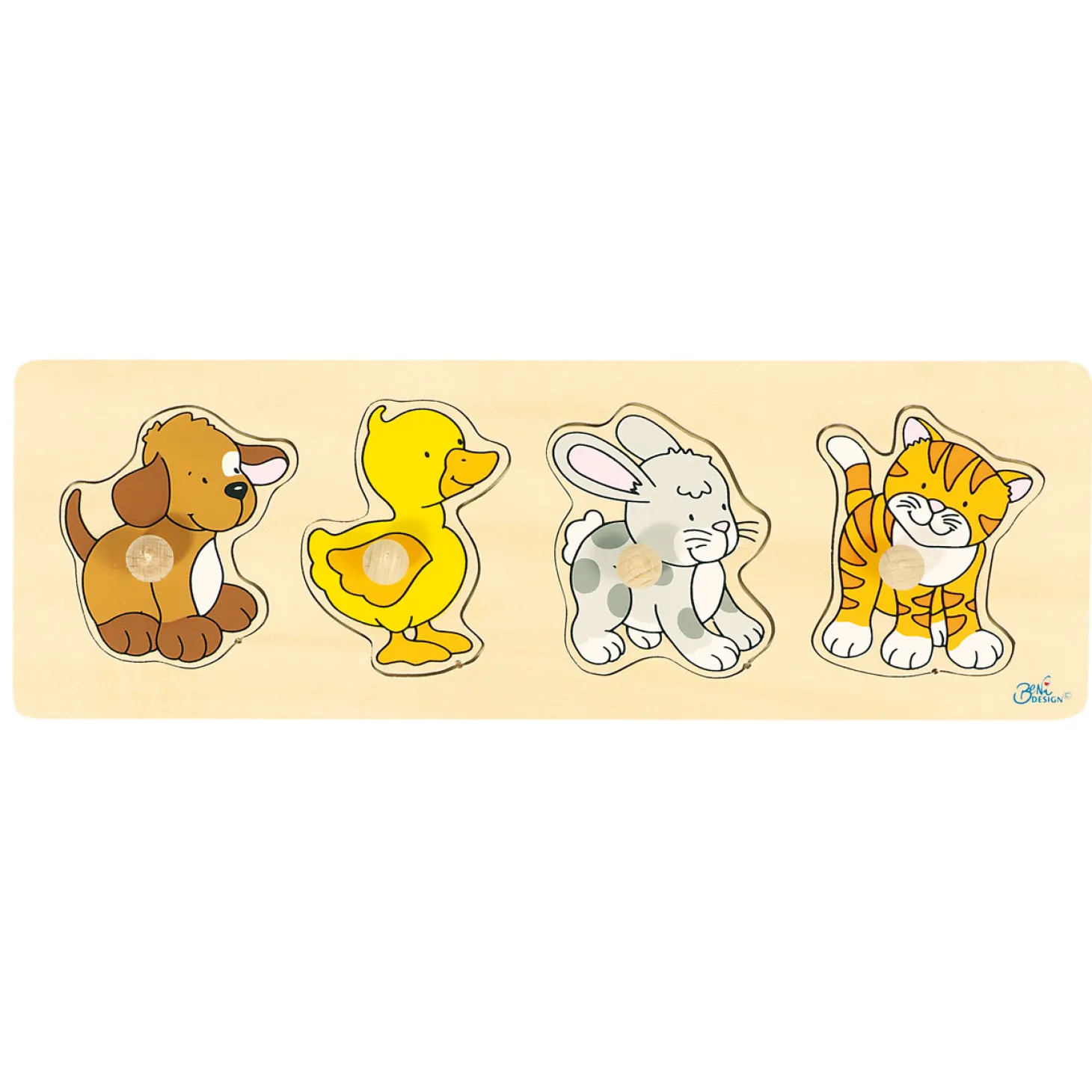 Goki Houten Noppenpuzzel Hond Eend Konijn Poes