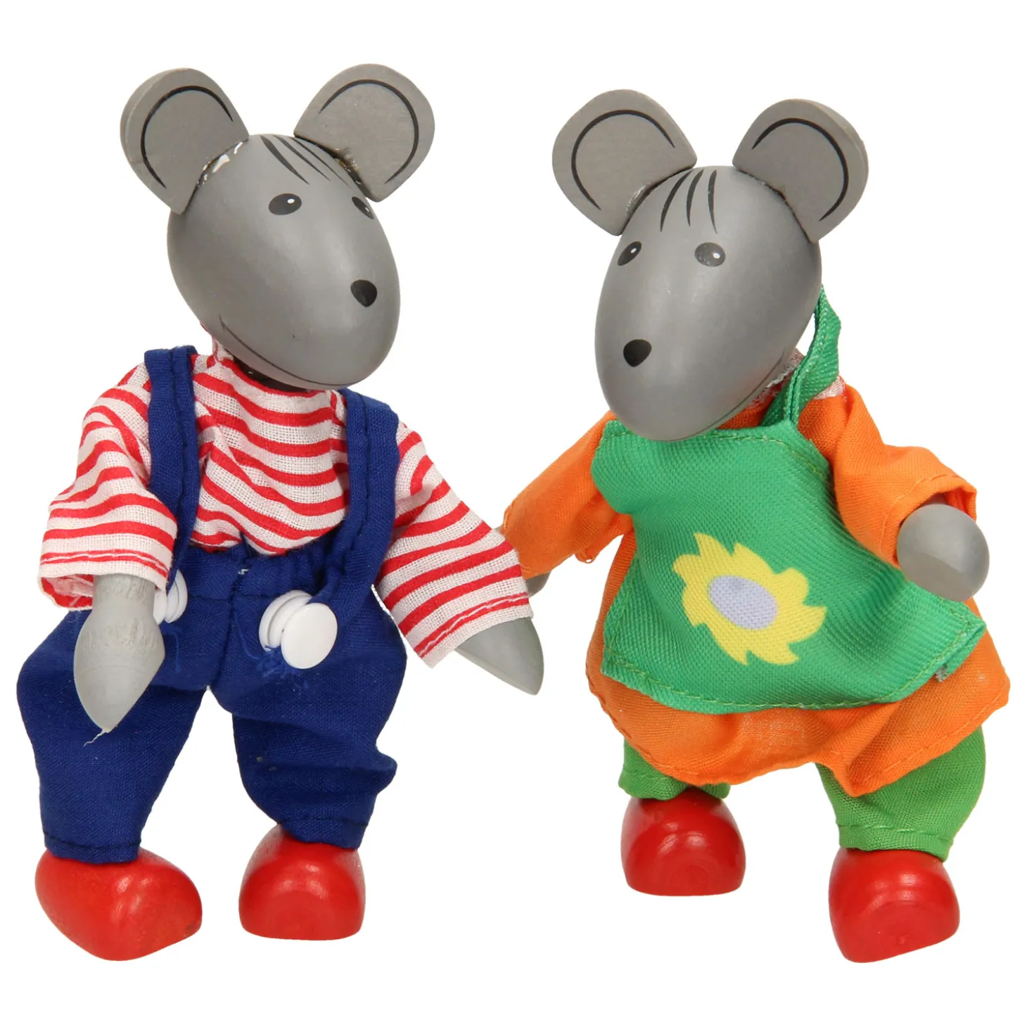 Deze set bestaat uit 2 buigbare muizenfiguren en 8 complete kledingsets. De set wordt geleverd in een handig houten opbergkistje met 4 vakken en schuifdeksel.