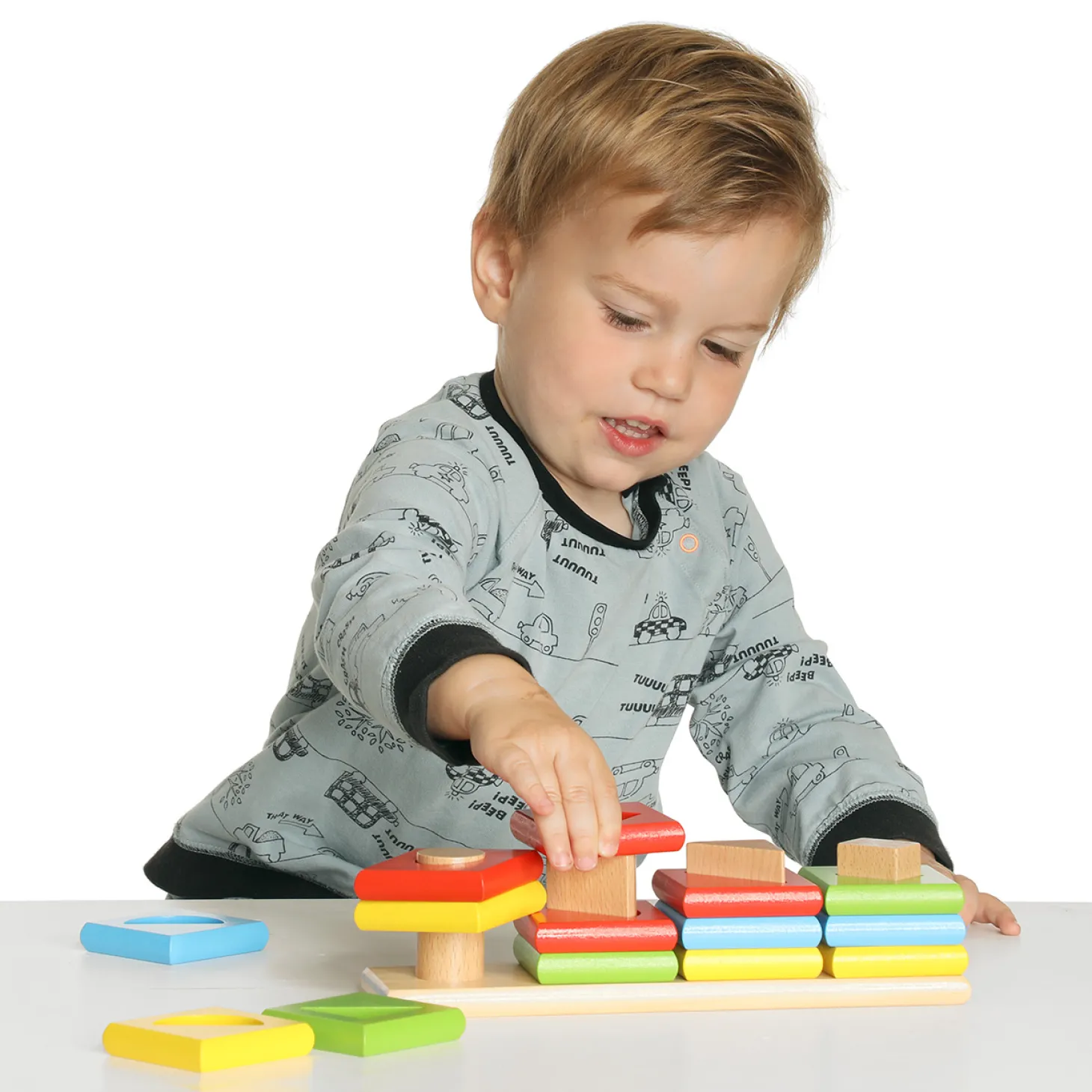 Kinderen leren spelenderwijs kleuren en vormen te sorteren.