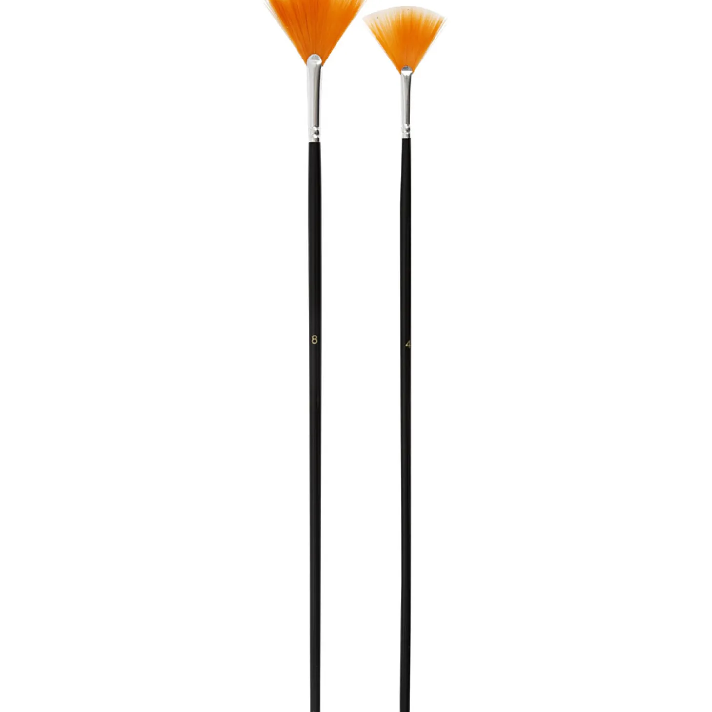 Set van twee platte waaierkwasten. De waaierkwasten hebben maat 4 (35 mm) en maat 8 (45 mm). De kwasten hebben nylon haren en zwart gelakte steel. De penselen zijn erg geschikt voor dunvloeiende verfeffecten. De kwasten zijn ook geschikt voor dikke verf.