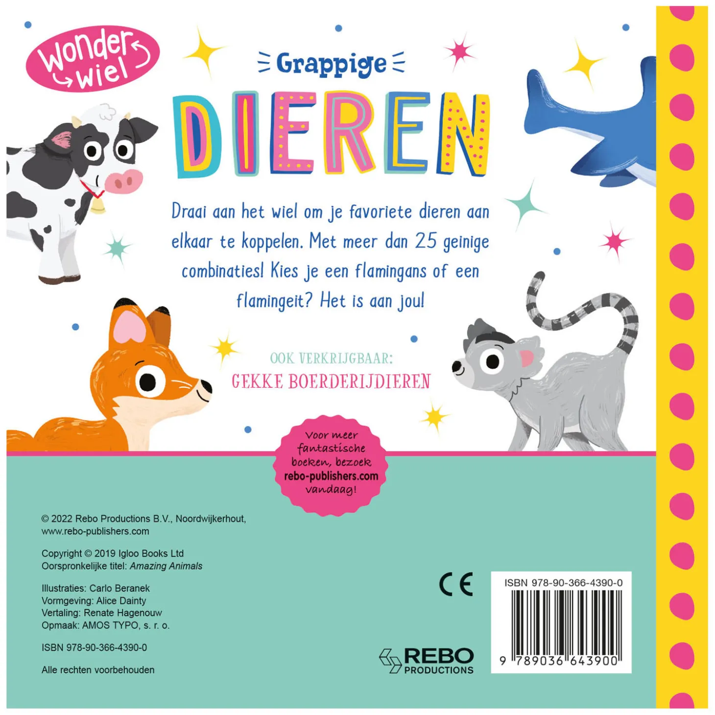 Draai aan het wiel om je favoriete dieren aan elkaar te koppelen. Meer dan 25 geinige combinaties! Kies je een eigen flamingans of een flamingeit? Het is aan jou!
