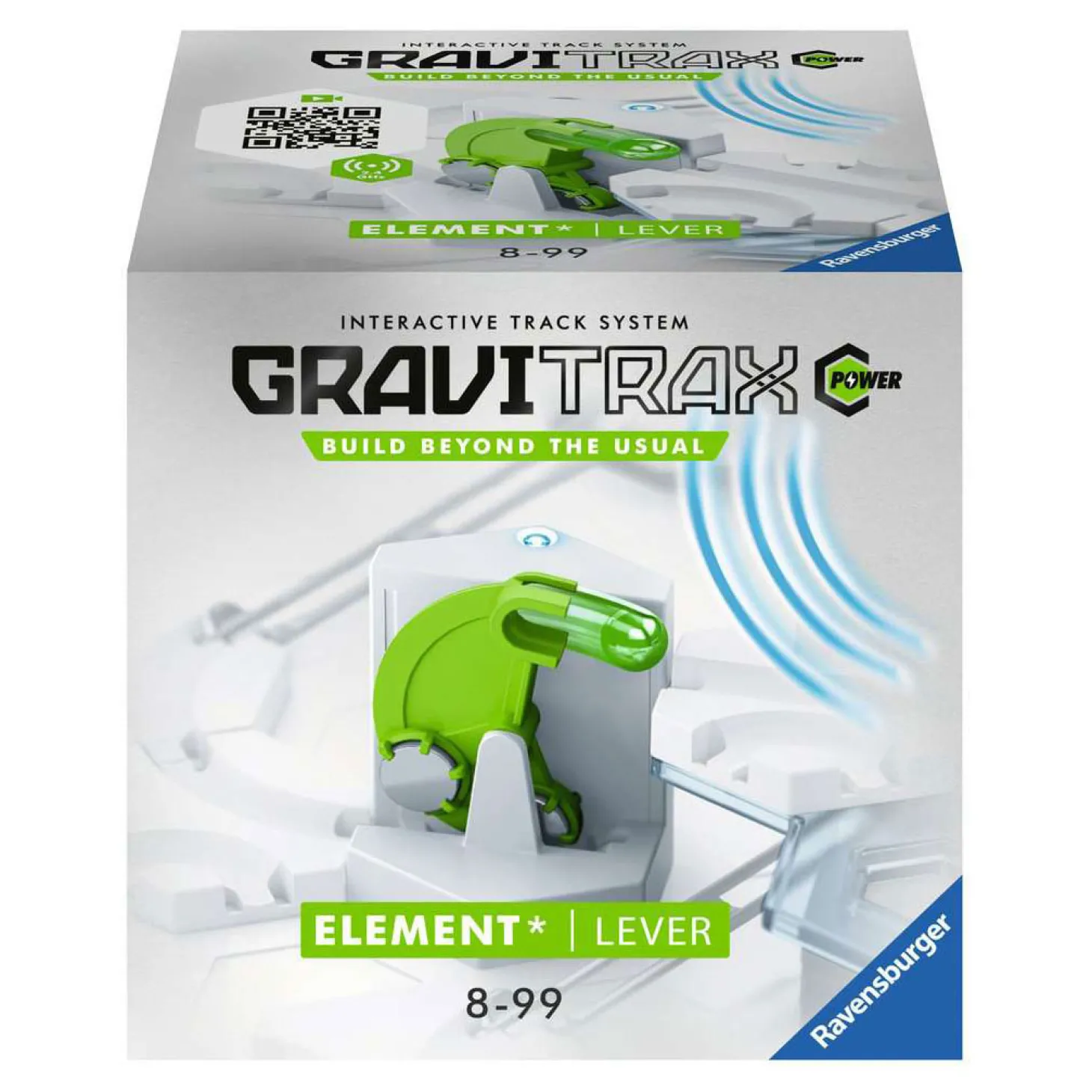 Besluit zelf hoe je deze gemotoriseerde versie van de “GraviTrax® Scoop” programmeert. Laat hem resetten nadat een kogel omhoog is gegaan, na een ontvangen signaal van een POWER-Trigger of neem zelf de leiding over met de POWER-controller (Beide POWER accessoires worden los verkocht).