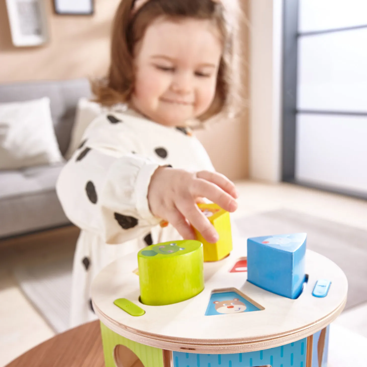 •De kleurrijke sorteerdoos Haba Lievelingsdieren leert kinderen vormen en kleuren te herkennen en te benoemen.