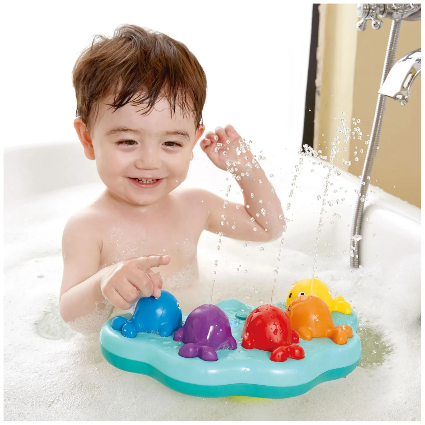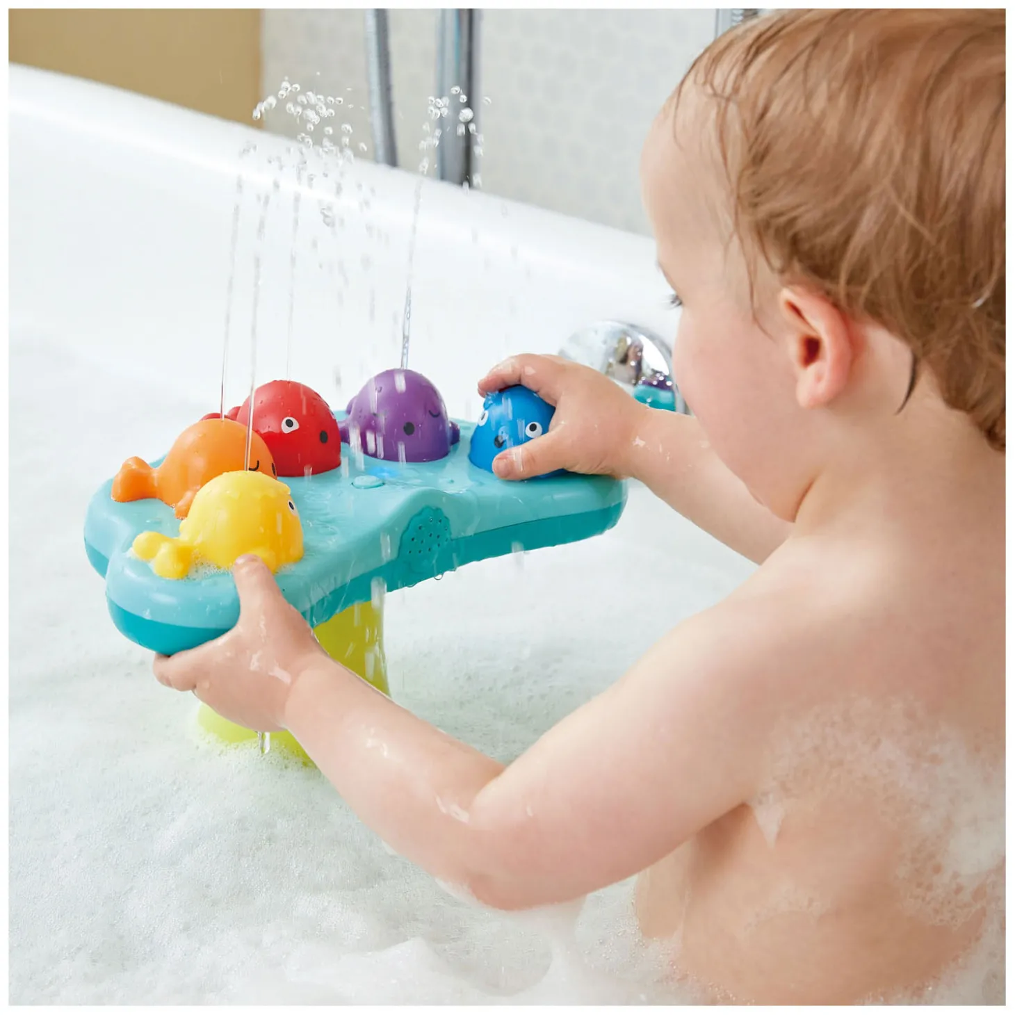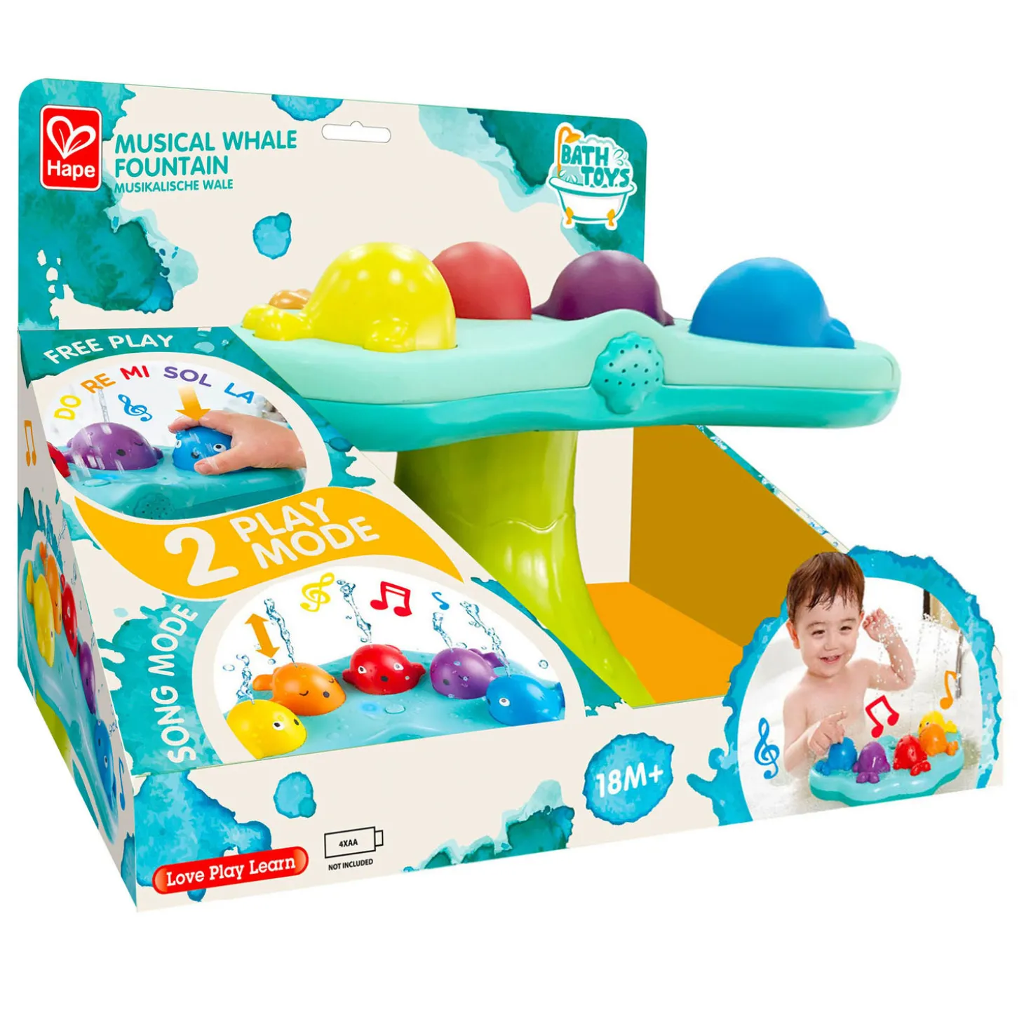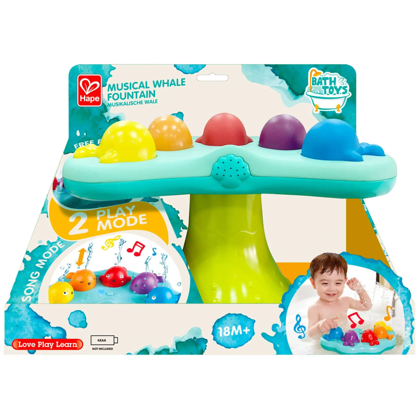 • Maakt muziek en spuit water omhoog