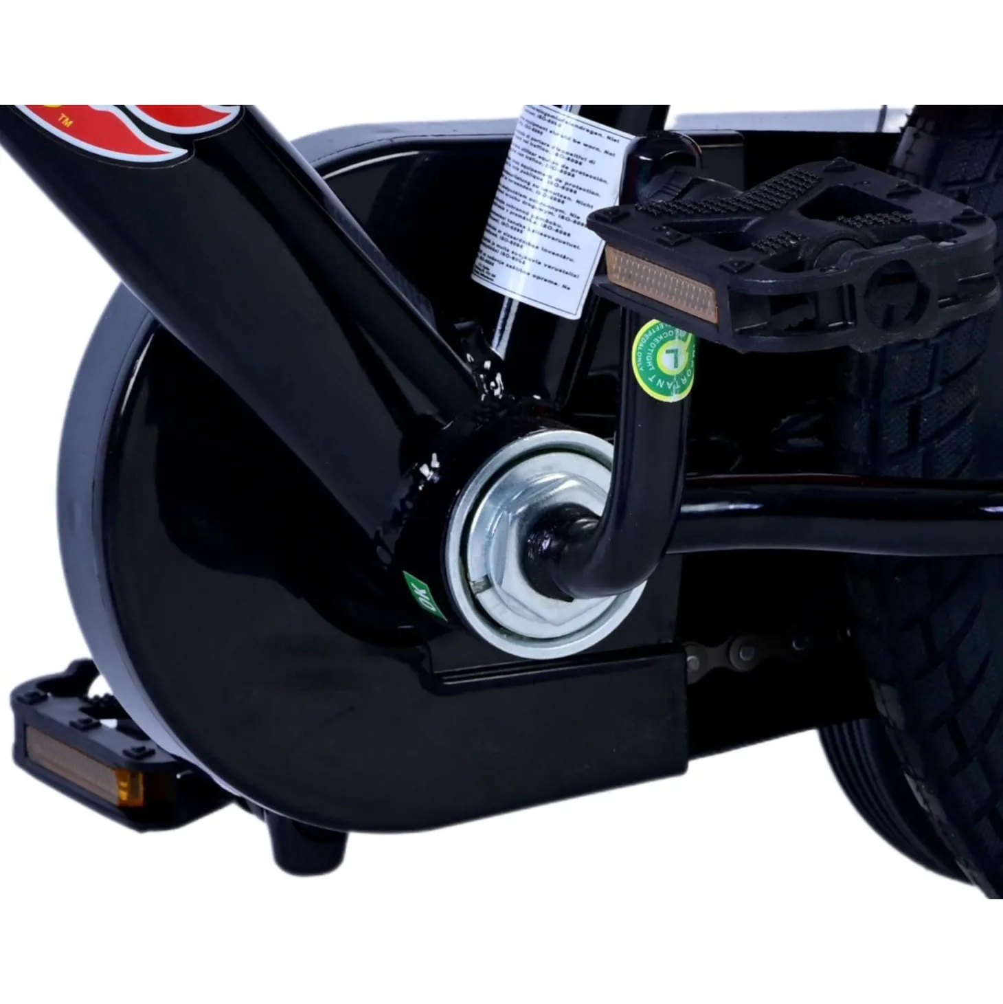 Veiligheid staat voorop! Daarom heeft deze gave fiets twee handremmen (geen terugtraprem) en een gesloten kettingkast. Daarnaast heeft de fiets afneembare zijwieltjes om snel te leren fietsen. Ook aan het comfort is gedacht. De mooie zwarte Hot Wheels fiets met blauw en oranje accenten heeft een aangenaam zacht zadel en een extra stevig frame dat wel tegen een stootje kan. Om zo lang mogelijk van de fiets te kunnen genieten is het zadel in hoogte verstelbaar. Kortom: een topkwaliteit fiets waar uw kind nog jaren van kan genieten!