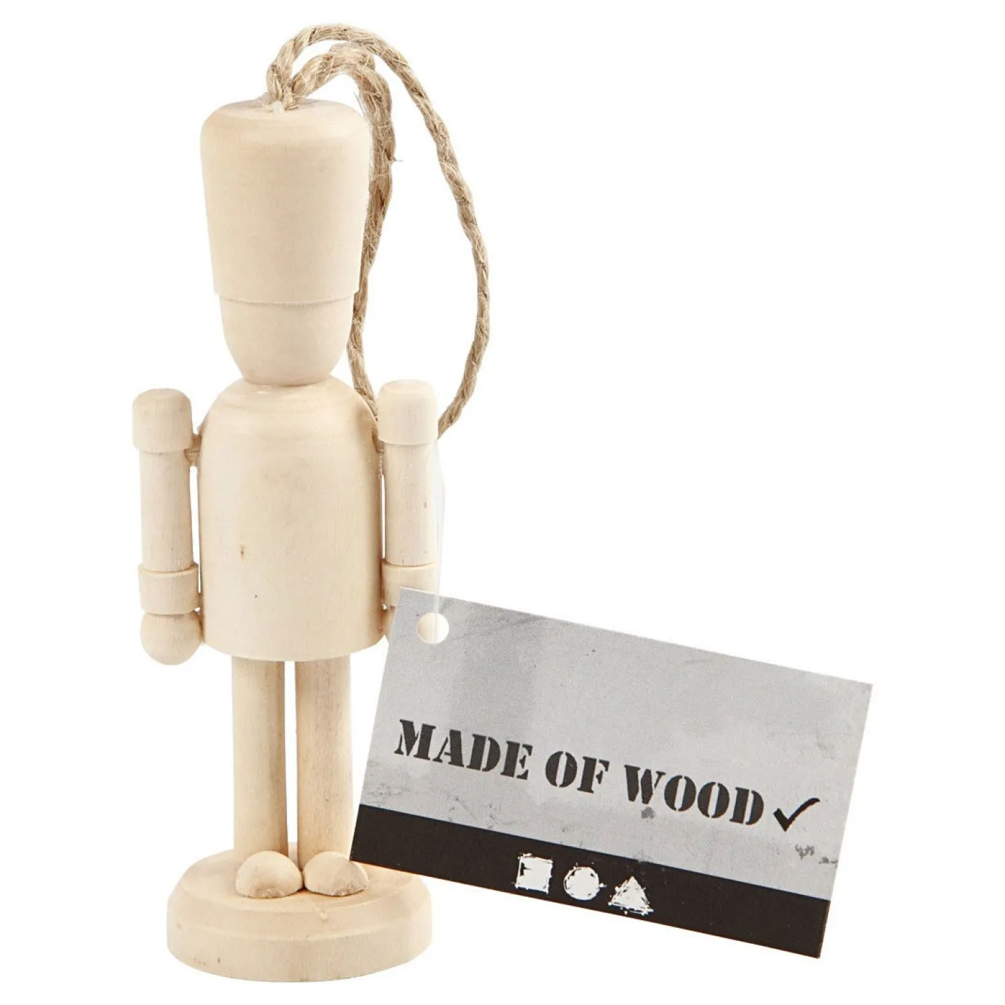 Figuur van licht hout met fijne details en ophangkoord. Figuur heeft een voet, zodat deze ook kan staan