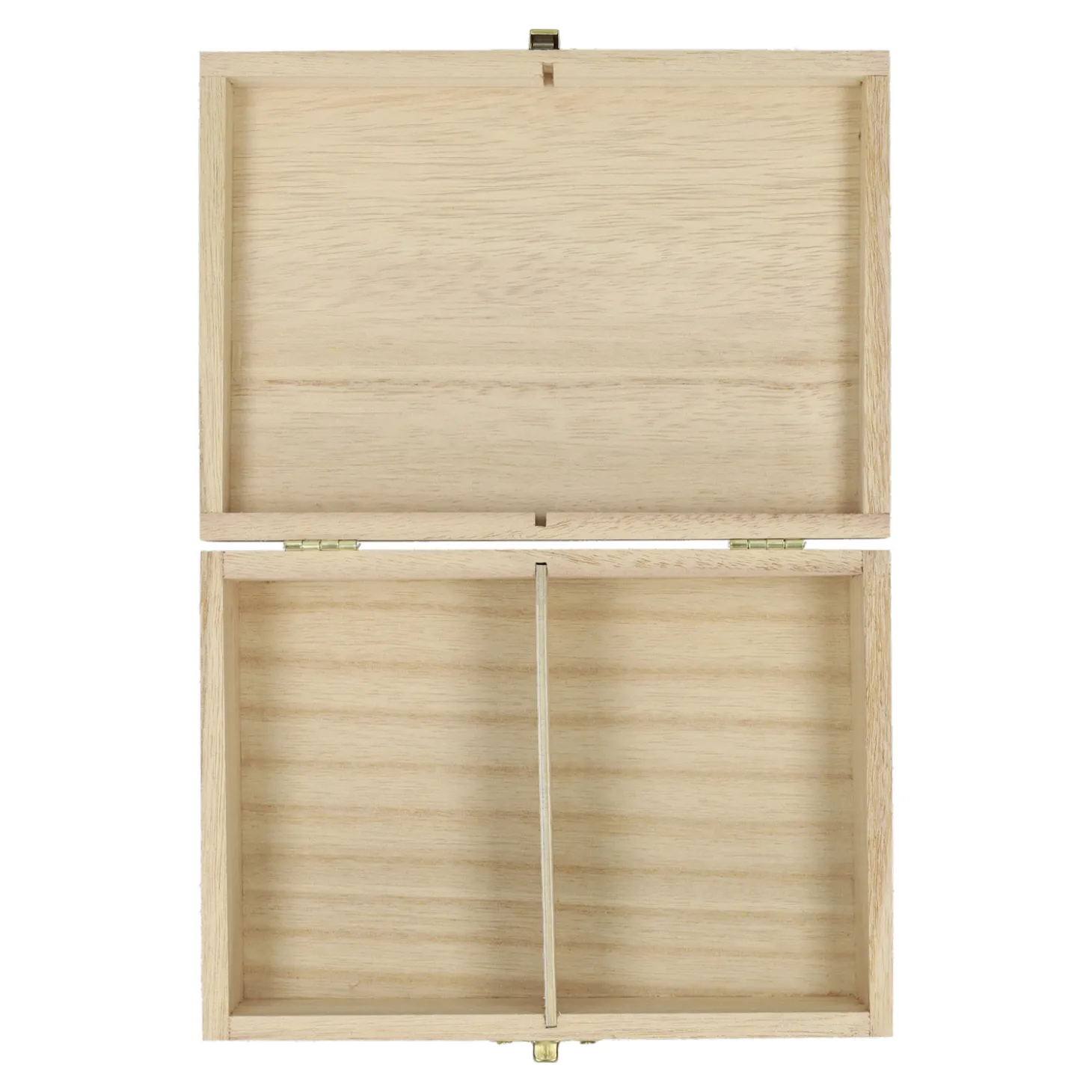 De binnenmaat van de deksel is 15,5 x 10,5 x 1,5 cm en de vakjes van de doos zijn elk 7,5 x 10,5 x 3,8 cm