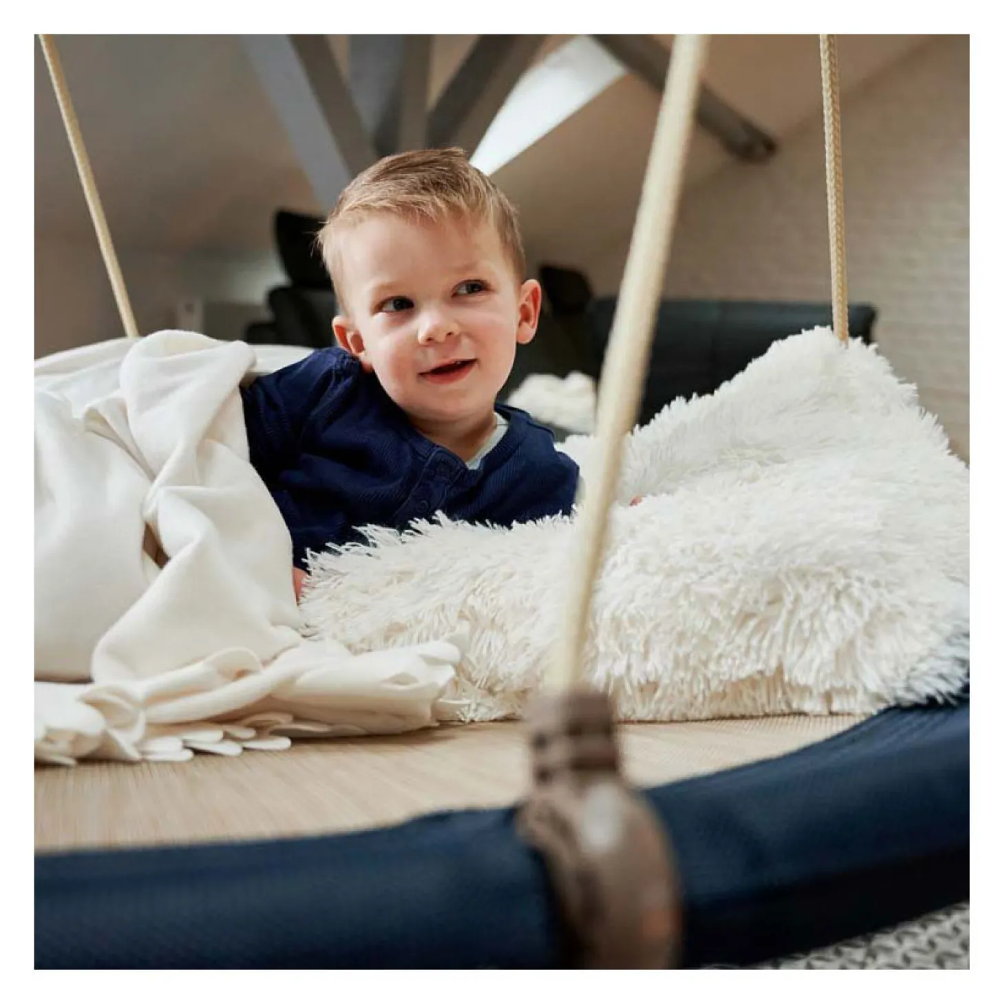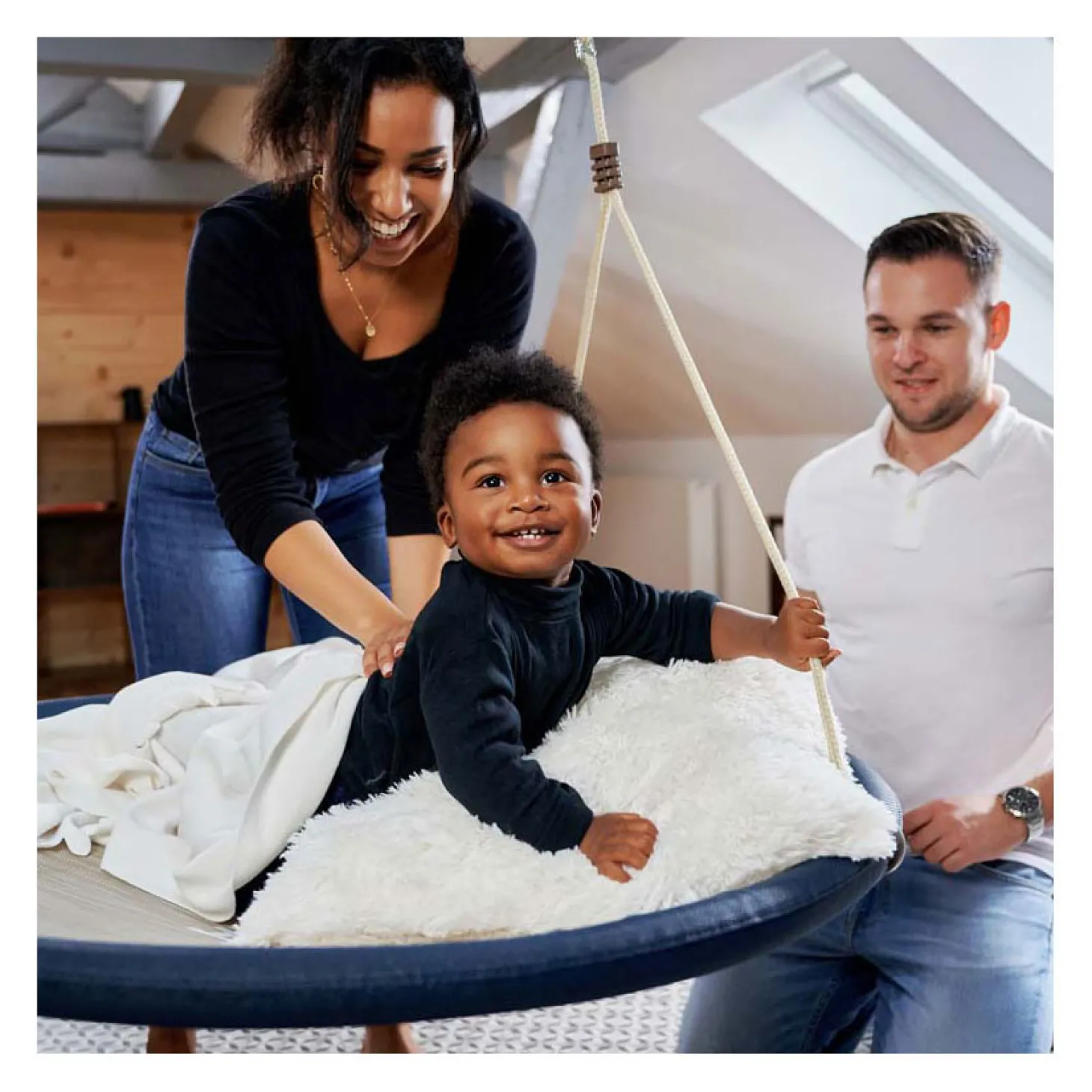 Hier kan je mee thuiskomen! De nieuwe ronde nestschommel met een diameter van 110 cm biedt niet alleen comfortabel schommelplezier, maar is ook echte blikvanger. Het gemêleerde nestoppervlak en de prachtige grijstint genaamd “Midnight” aan de rand passen in elk trendbewust tuinontwerp.