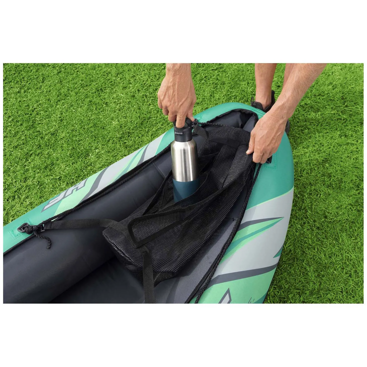 Hydro-Force Ventura Elite X1 Opblaasbare Kajak is de perfecte manier om uw buitenervaringen naar een hoger niveau te tillen.Premium Gecoat Nylon:De premium nylon coating op de Ventura Elite X1 Kajak is ontworpen voor de sterkste avonturier en is bestand tegen enkele van de meest impactvolle elementen. De stof is oliebestendig, waterdicht en kan de intense UV-stralen van de zon weerstaan. De premium nylon coating is ook lekbestendig en gemaakt om het ruwe en vaak rotsachtige water van een rivier te weerstaan. Deze duurzame kajak helpt u om door kronkelende rivieren, meren, over kalm open water of over golven van eb en vloed te manoeuvreren.Hoofdkenmerken:Deze kajak met één zitplaats is ontworpen met een verstelbare rugleuning voor comfort en ondersteuning, en biedt u ruimte voor uw benodigdheden zoals snacks en water in een gemakkelijk toegankelijk opbergvak onder de zitplaats. Naast de interne opslag is er ook een verwijderbare opbergtas die u toegang biedt tot uw benodigdheden terwijl u door het water peddelt. De aluminium roeispaan met dubbele bladen is licht van gewicht en wordt vlak tegen de kajak gehouden door veilige roeispaan klemmen. Het heeft stevige handgrepen aan elke kant, waardoor het verplaatsen van de kajak een fluitje van een cent is. De Ventura Elite X1 Kajak heeft 2 verwijderbare vinnen die u kunt verwisselen, afhankelijk van de watercondities, voor directionele stabiliteit.Wanneer u klaar bent met het gebruik van de Ventura Elite X1 Kajak, kan u het gemakkelijk laten leeglopen, opvouwen en opbergen totdat u klaar bent voor uw volgende avontuur!
