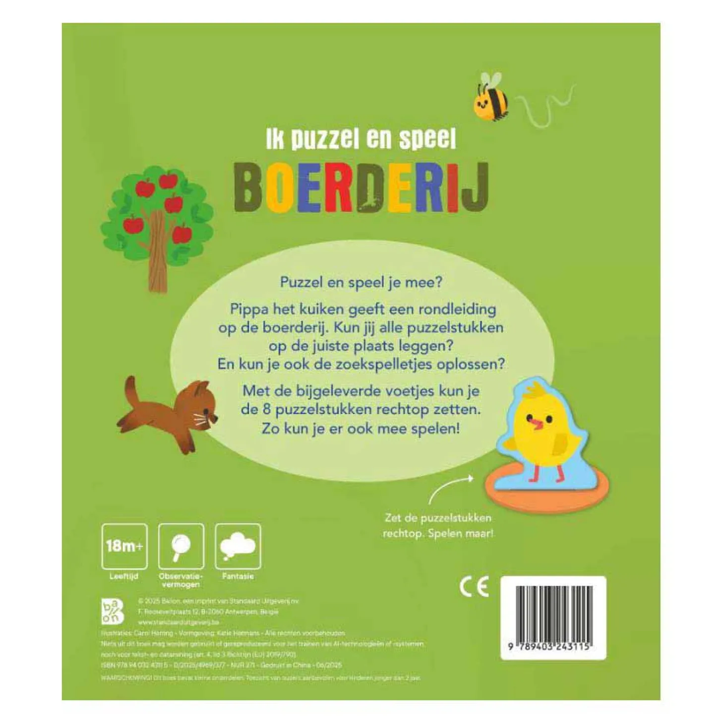 Puzzel en speel je mee? Pippa het kuiken geeft een rondleiding op de boerderij. Kun jij alle puzzelstukken op de juiste plaats leggen? En kun je ook de zoekspelletjes oplossen? Met de bijgeleverde voetjes kun je de 8 puzzelstukken rechtop zetten. Zo kun je er ook mee spelen!