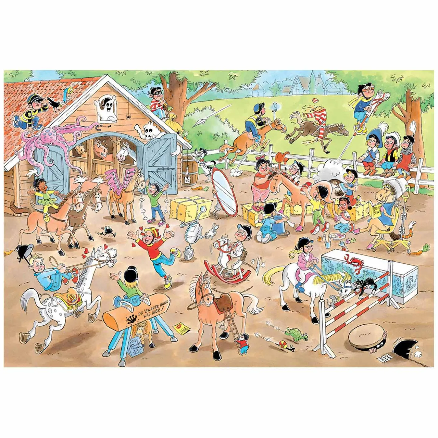 Het is een drukke boel met de vrienden van Jan van Haasteren Junior op de manage. De trouwe ros van Sinterklaas Junior is in ieder geval in extase om zijn baasje weer te zien! Maar wat voor fratsen halen de andere vrienden uit? Deze humoristische puzzel van 360 stukjes is geschikt voor kinderen vanaf 7 jaar.