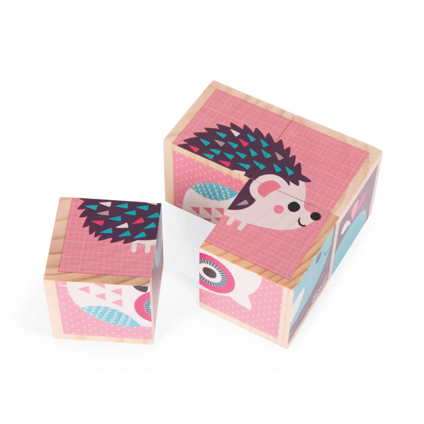 Maak je eerste puzzel met deze blokken van Janod. Puzzel de 4 blokken op de juiste manier tegen elkaar aan en zie een van de 6 babydieren verschijnen. De puzzel is gemaakt van stevig hout en afgewerkt met heldere kleuren.