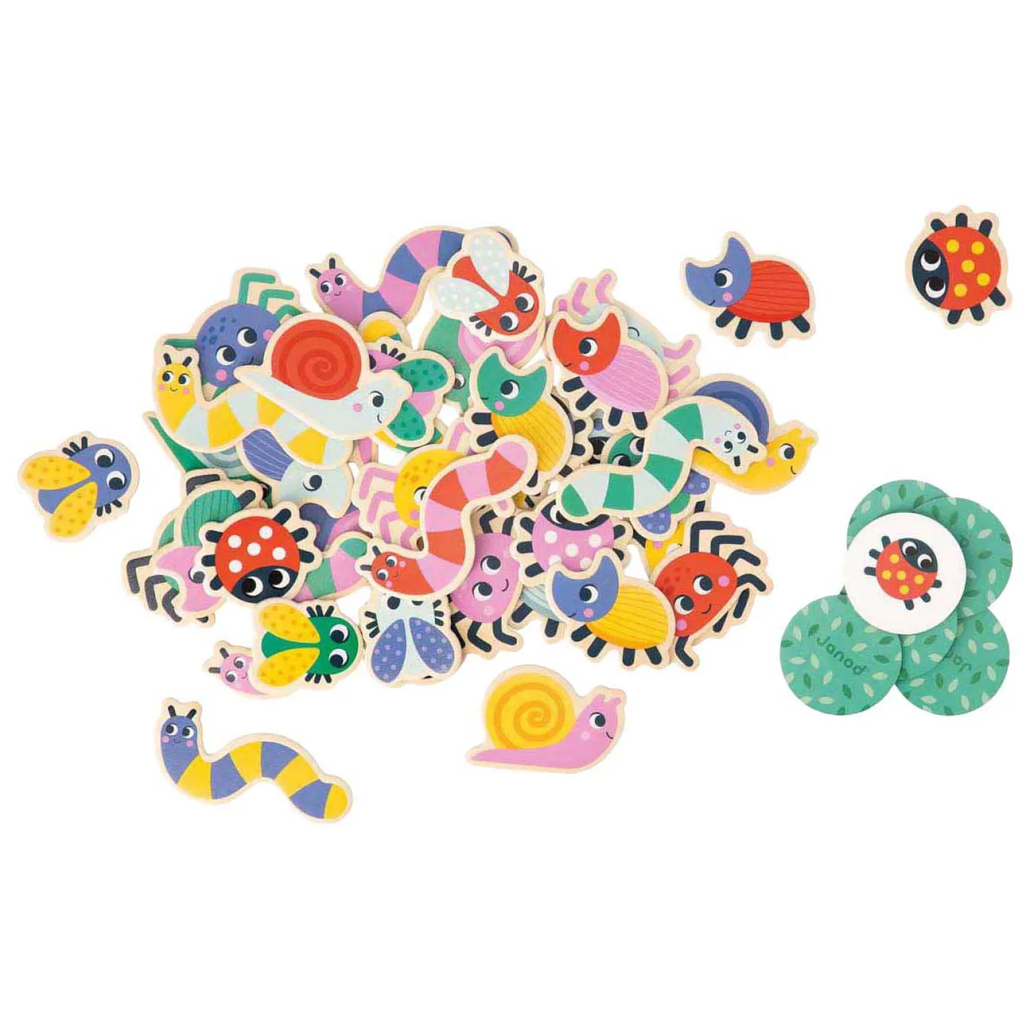 •Bevat 42 houten insecten en 42 ronde kartonnen kaarten