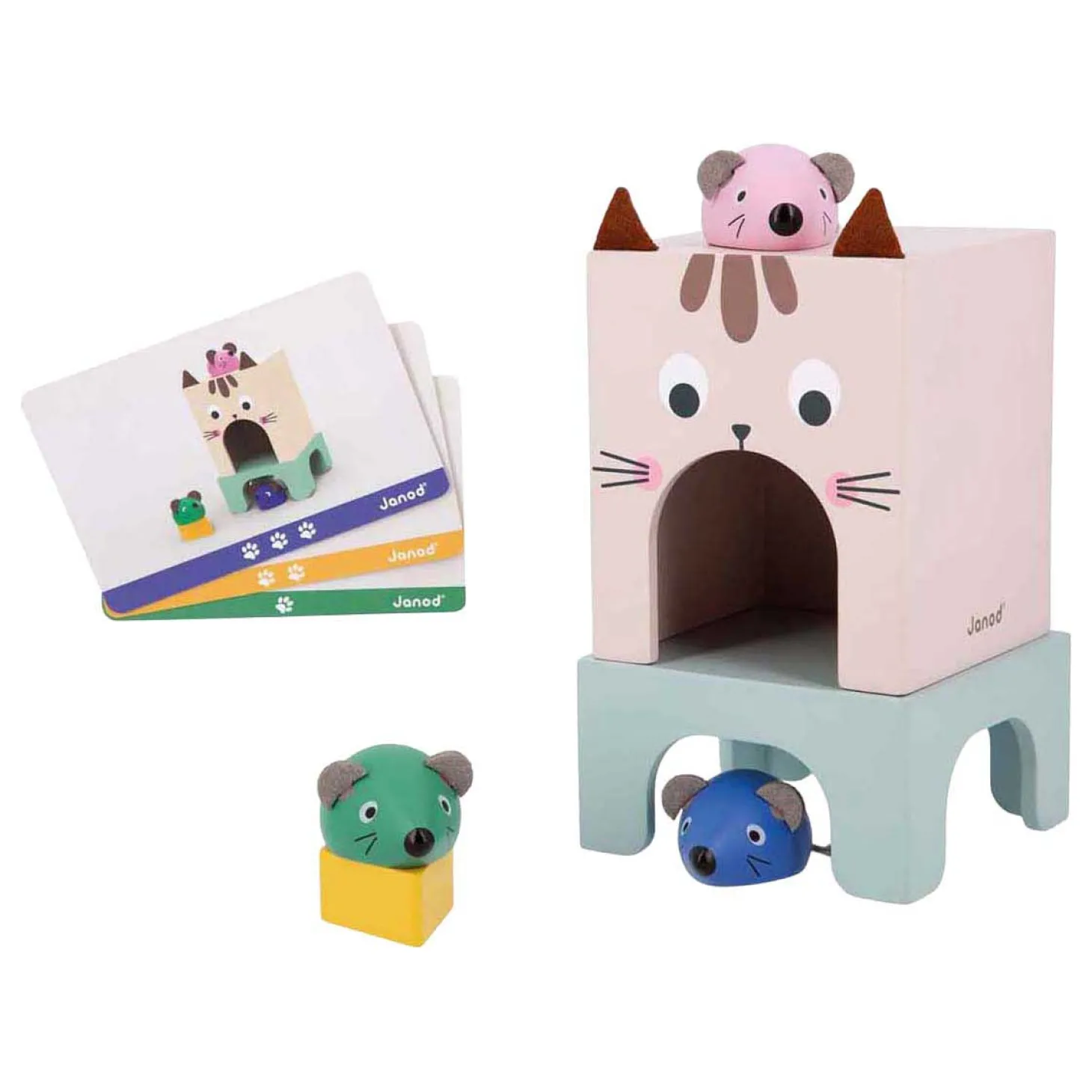 •Inclusief 3 gekleurde muizen, een stuk kaas en een kattenhuis-doos