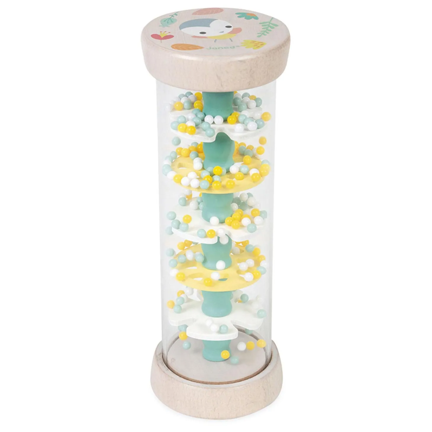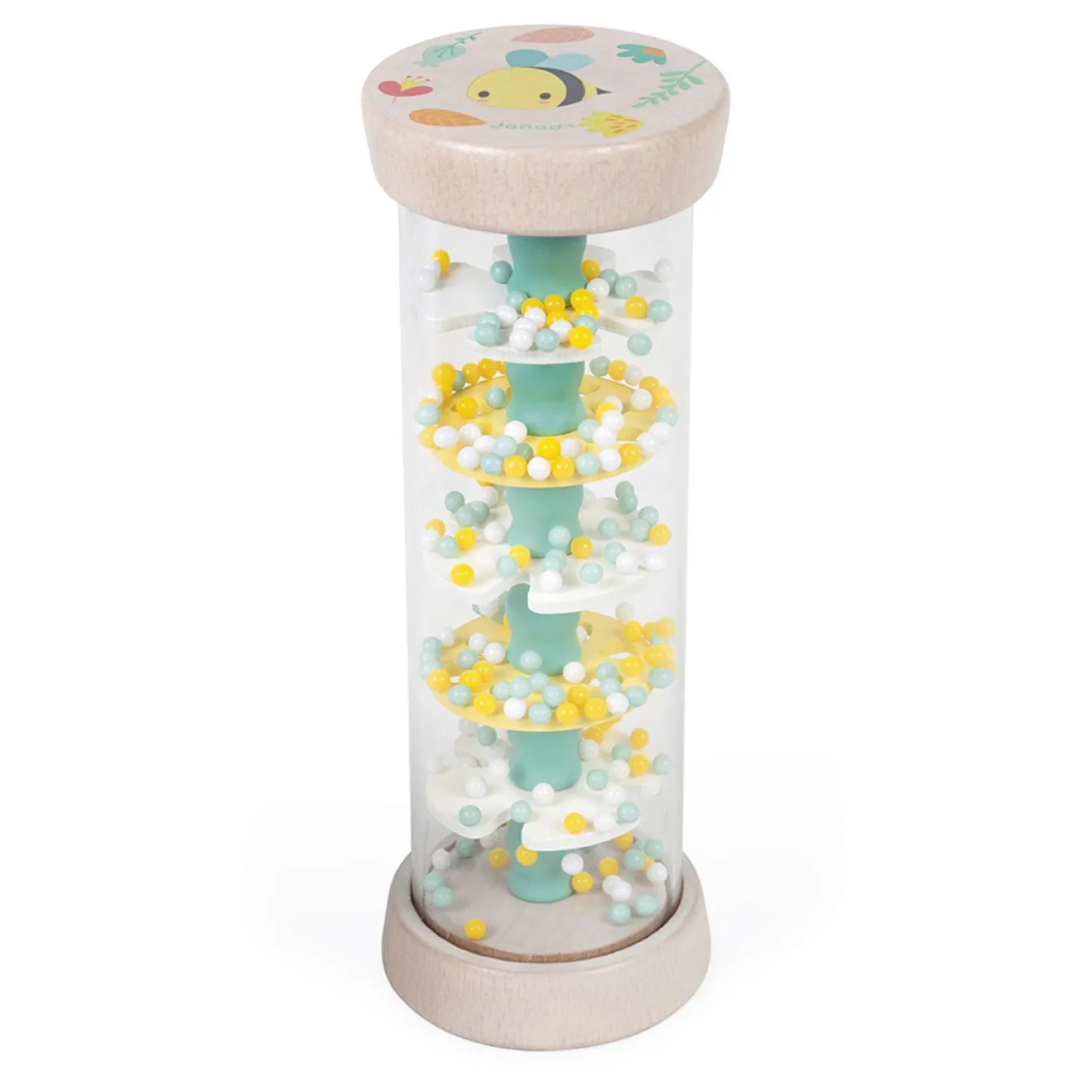 De zachte regendruppelgeluiden geven je kindje een fijn en kalm gevoel. De vorm is speciaal ontworpen voor de handjes van een peuter. Door de eenvoudige grip schakel je makkelijk tussen het maken van regengeluiden en het gebruiken van de koker als rammelaar. Geweldig voor de zintuiglijke ontwikkeling! Deze regenmaker heeft zachte lentekleuren en een mooie lente-illustratie aan de bovenkant.