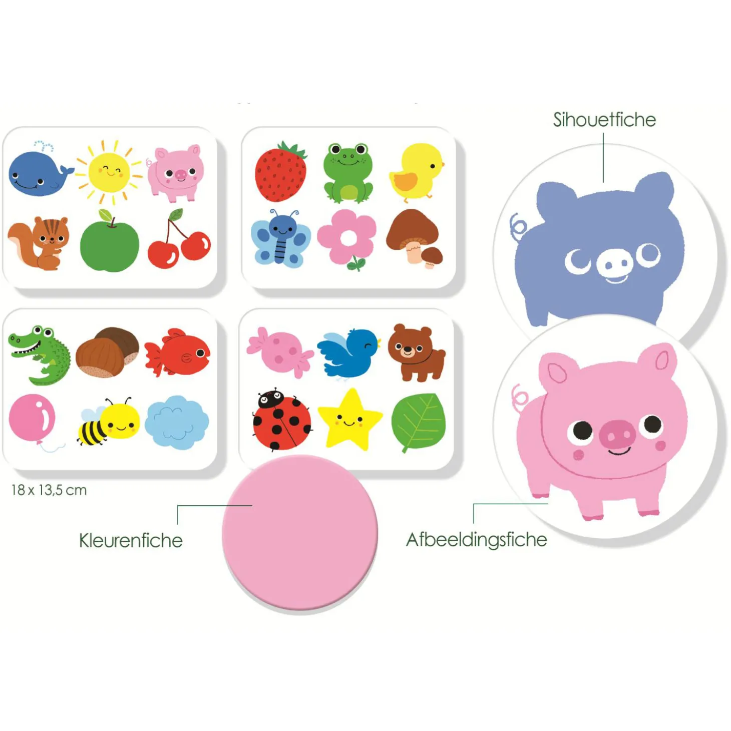 Met ‘ik leer vormen & kleuren’ leren kinderen spelenderwijs kleuren benoemen, vormen & silhouetten herkennen, de woordenschat vergroten en verbanden leggen. Kan jij een afbeeldingen met dezelfde vorm of kleur vinden? Maak zo de grote lottokaart compleet.