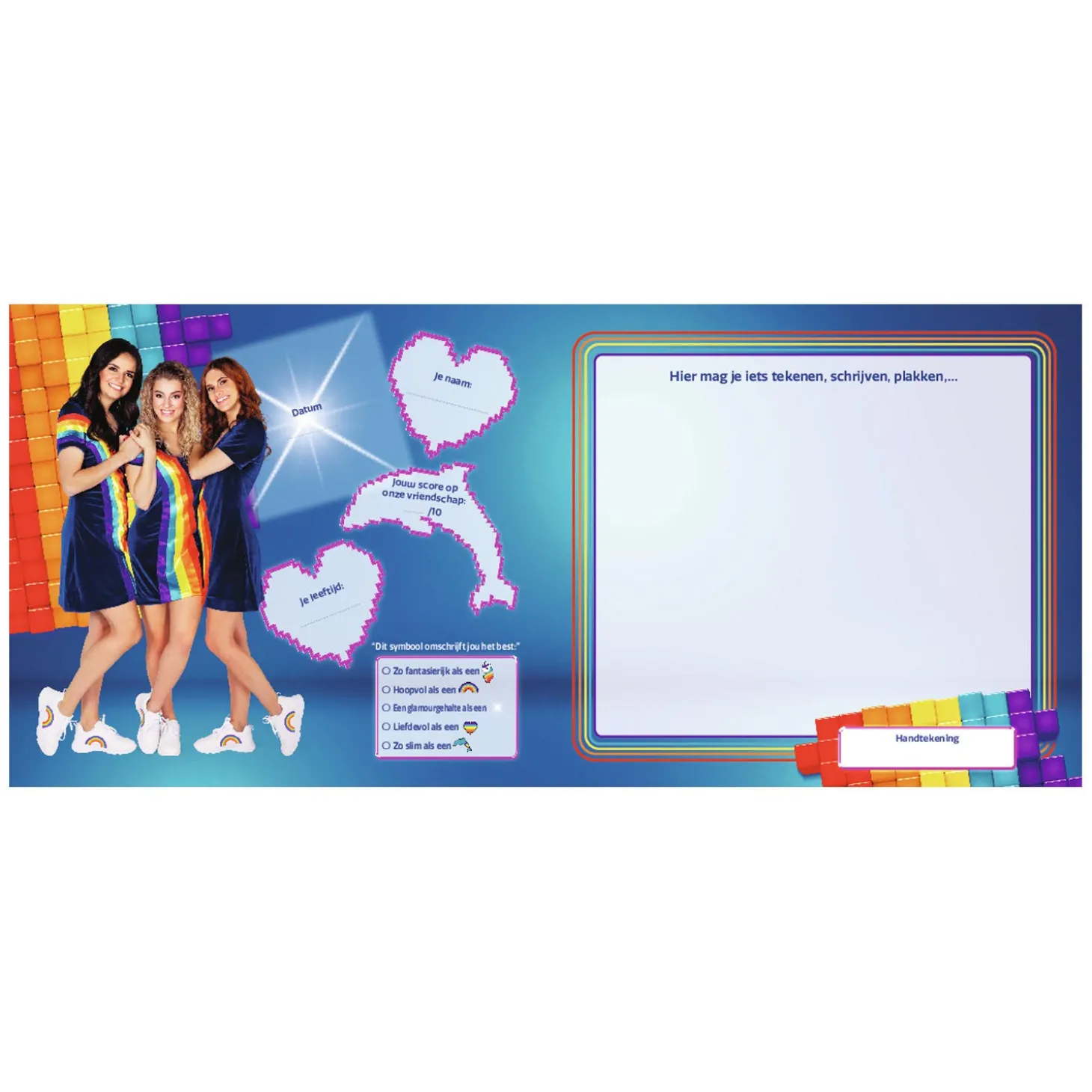 Schrijf een gedichtje, teken een regenboog of vertel welke K3-dansjes je het liefst samen met je vriendje of vriendinnetje doet. Dit leuke poesiealbum met foto’s van Hanne, Marthe en Julia wordt dé verzamelplek voor berichten van iedereen die belangrijk voor je is!