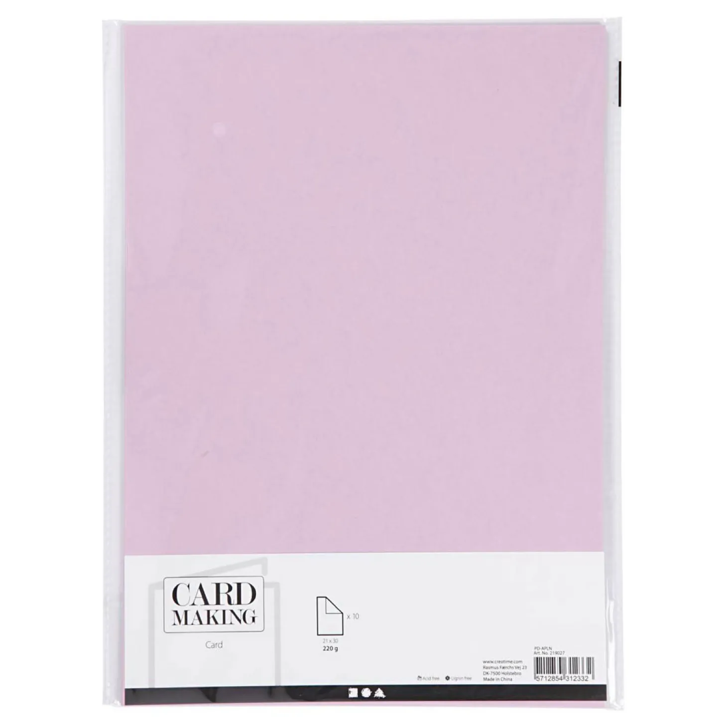 Set van 10 vellen lichtpaars karton in A4-formaat, met een fijne structuur aan één zijde. Perfect voor al je knutselprojecten, van leuke kaarten tot creatieve plakboeken!