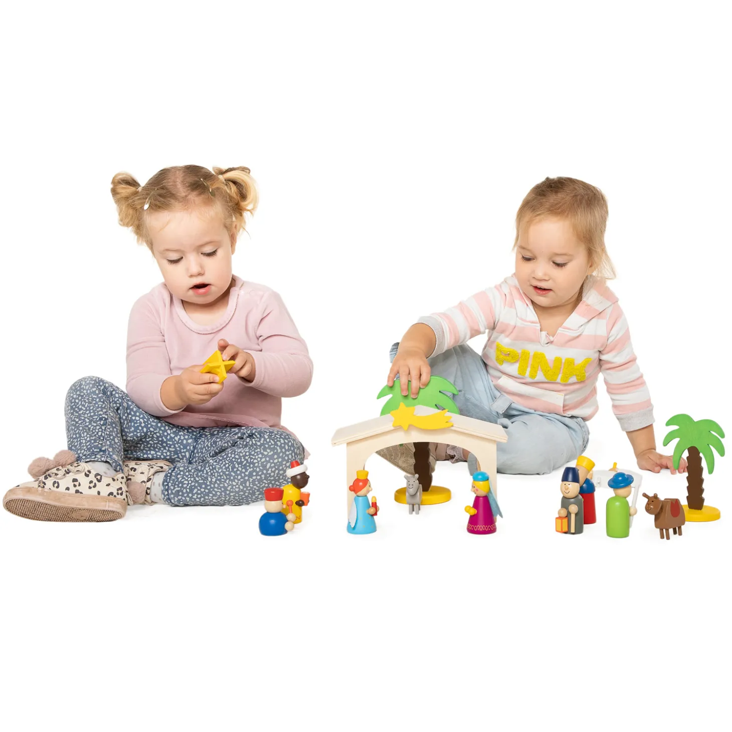 Mooi uitgevoerde kerststal van hout. Geef deze kerststal een mooie plek in huis en je kunt elke dag toeleven naar het kerstfeest! De speelfiguren hebben een hoogte van ongeveer 8 cm. De dieren hebben een hoogte van 6 cm.