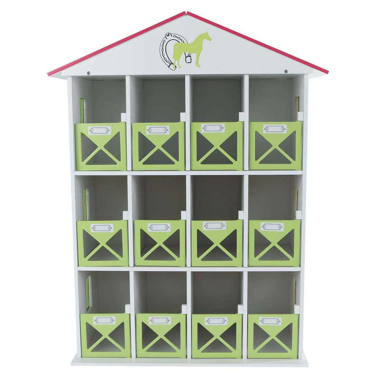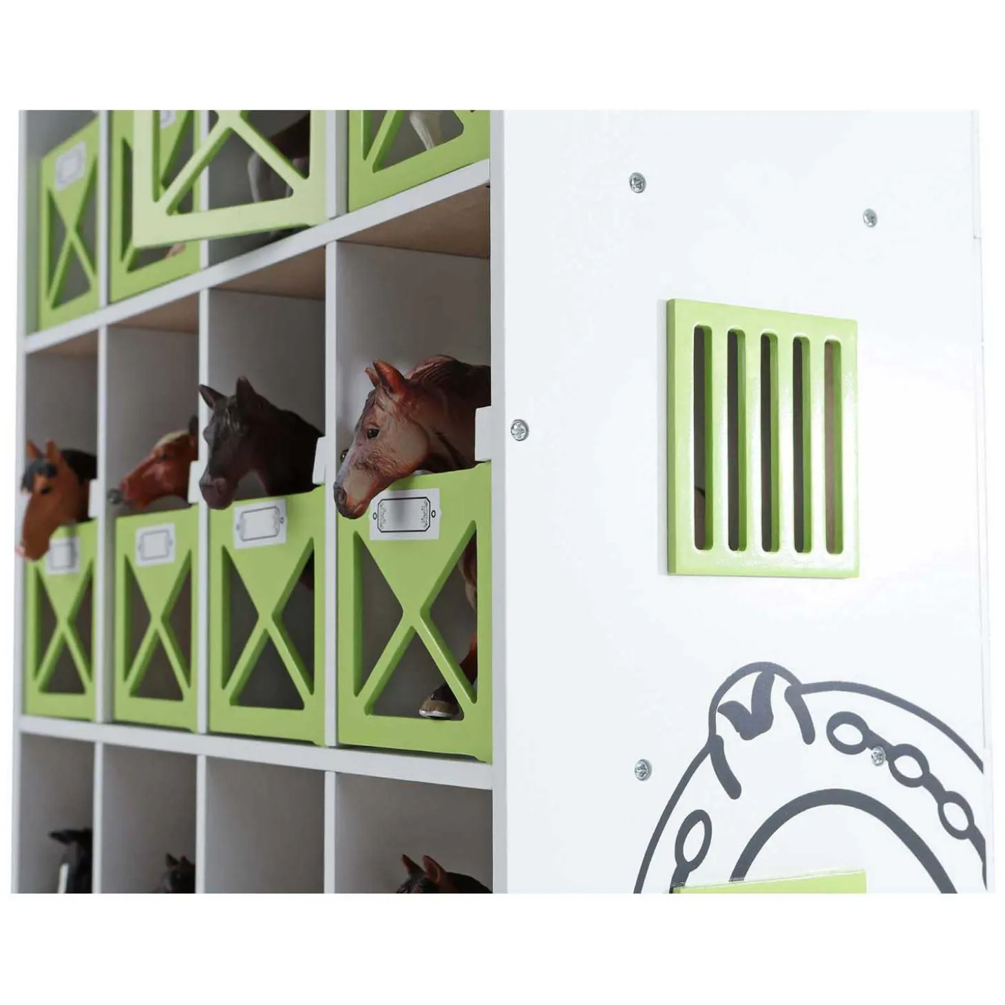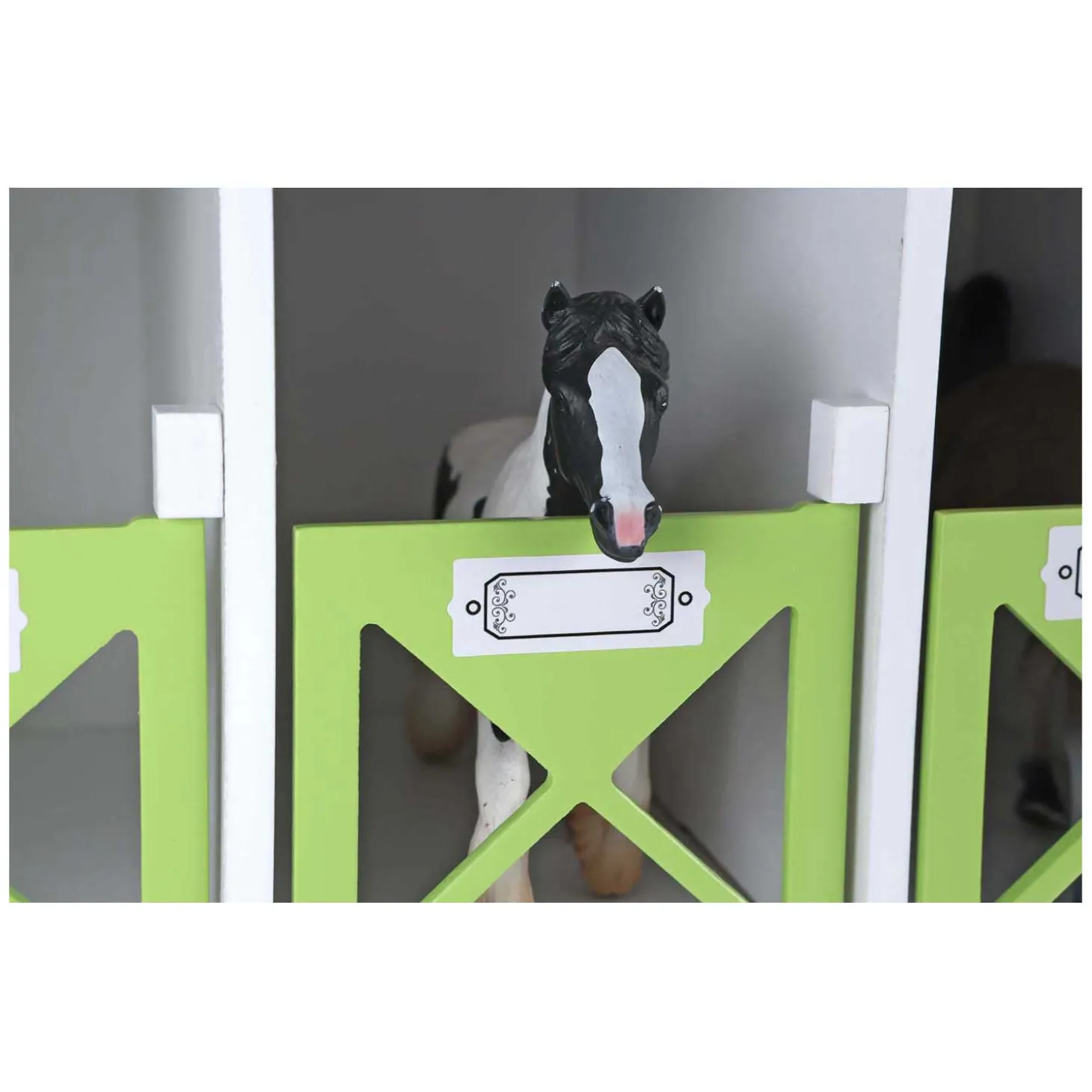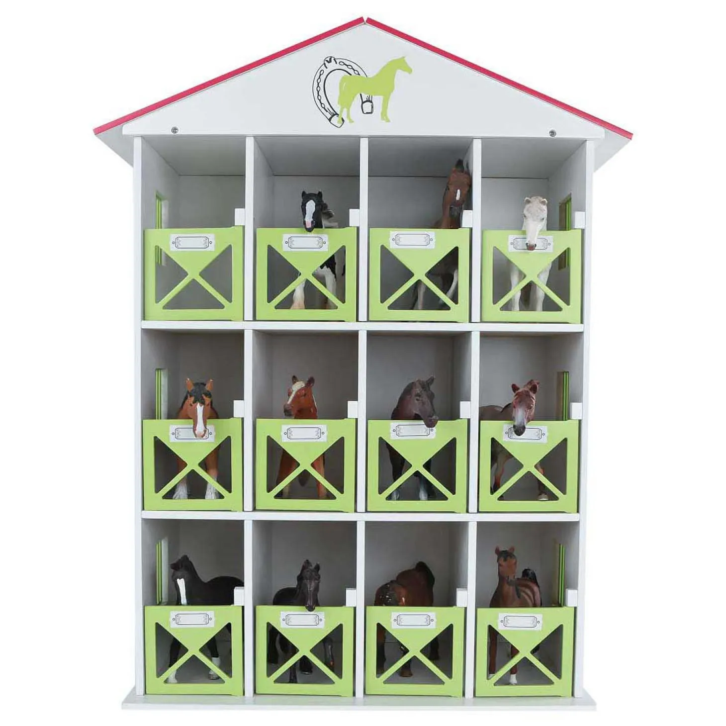 De stevige stal is gemaakt van hout en mooi afgewerkt, waardoor hij er realistisch uitziet en tegelijk stevig genoeg is om volop mee te spelen. Dankzij de afmetingen van 19 x 41 x 53 cm is het indrukwekkend speelgoed dat perfect past in de speelkamer! Ideaal om je paarden netjes te stallen én je fantasie de vrije loop te laten!
