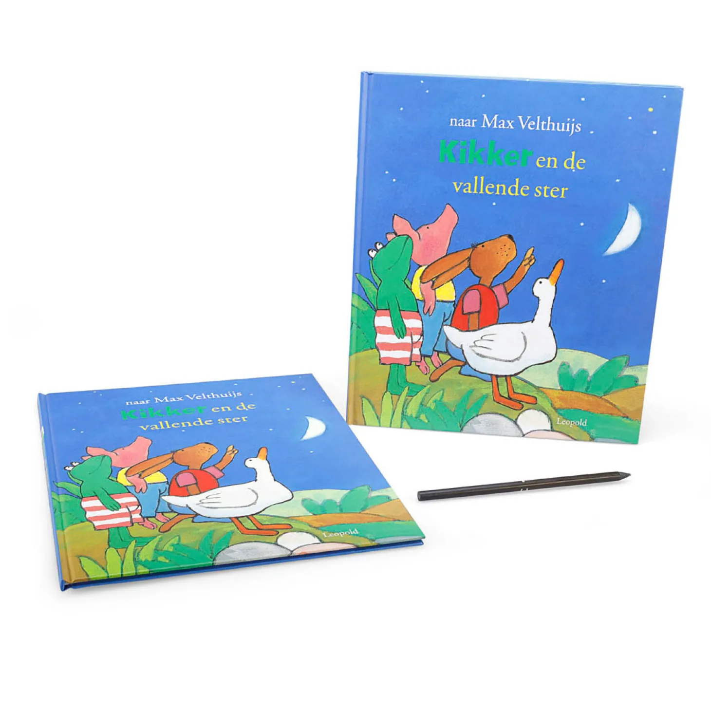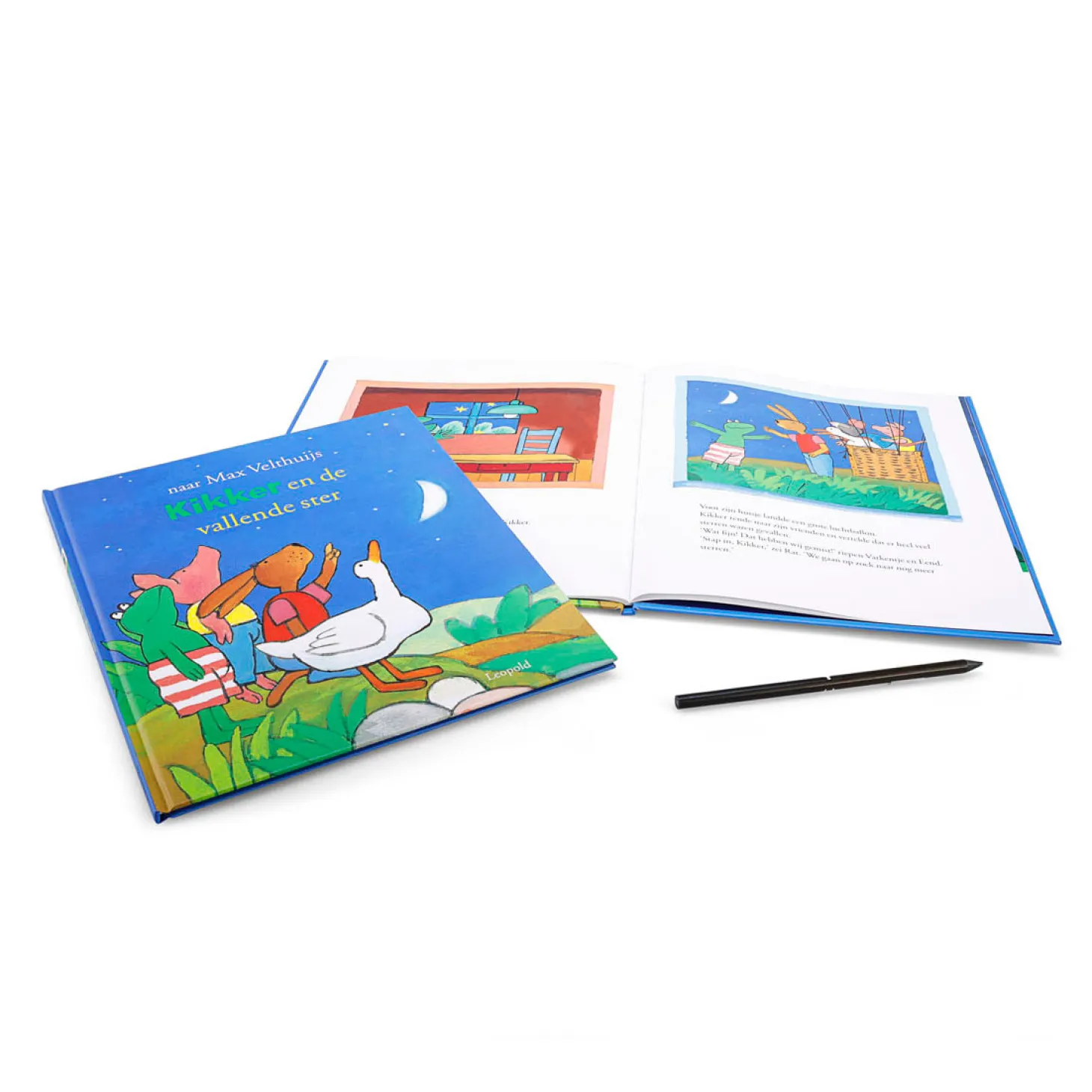 In het voorleesboek Kikker en de vallende ster is Kikker verdrietig. Hij heeft als enige geen vallende ster gezien en mag daarom geen wens doen. Kikker herstelt zich en verzint een plan om blij van te worden. Ondertussen zijn de vrienden van Kikker ook bezig met een plan: ’s nachts vliegen in een luchtballon! Het kartonnen boek Kikker en de vallende ster gaat over vallende sterren, wensen en vriendschap!