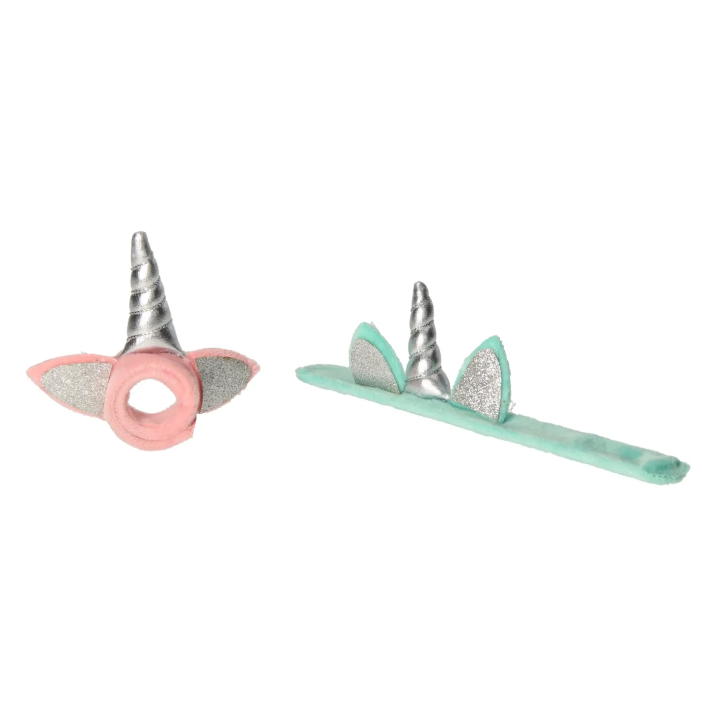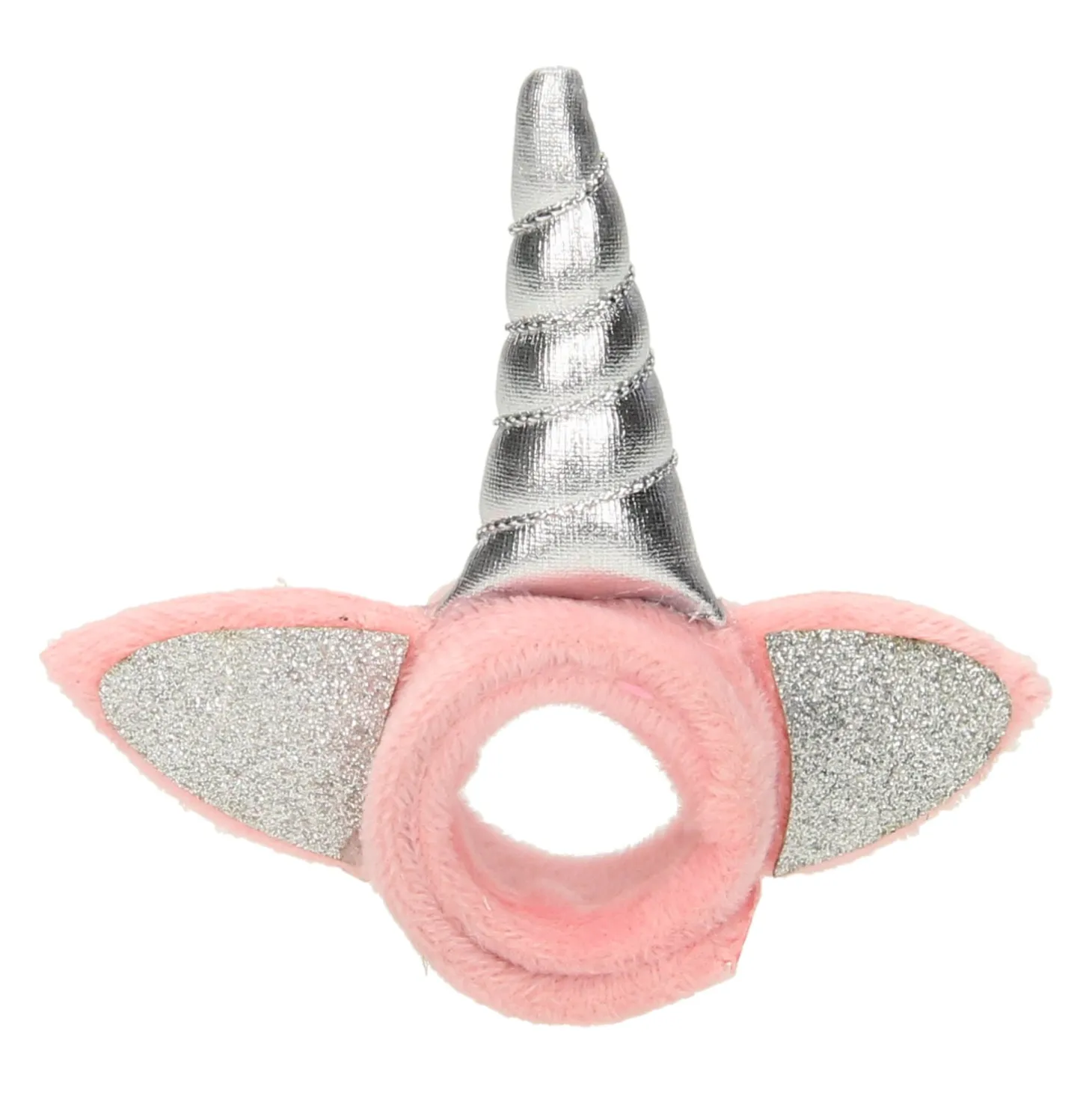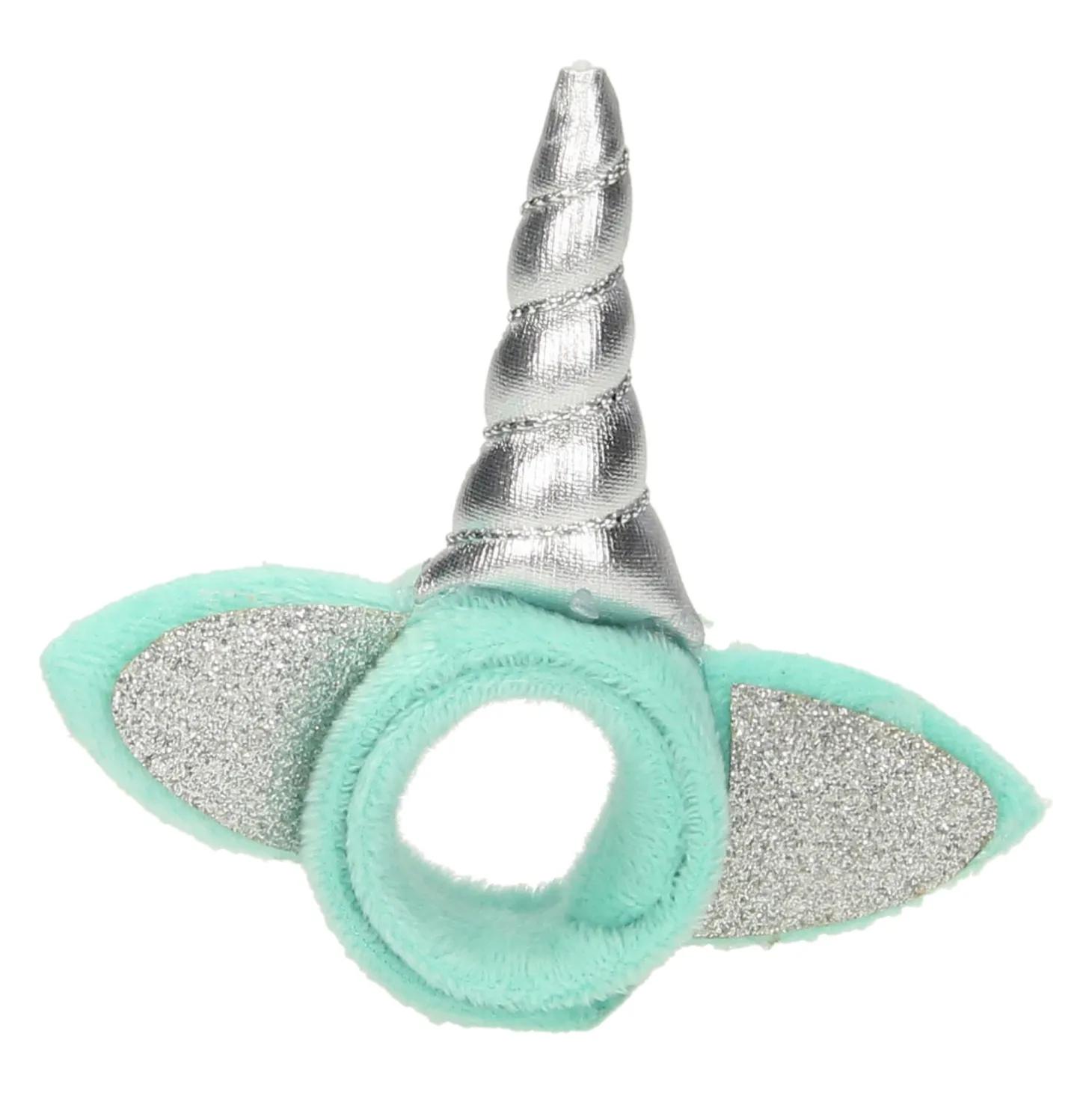 Zachte, pluchen klaparmband die om de arm krult als hij er tegenaan wordt geslagen. De armband is gemaakt van zachte stof en heeft een leuke eenhoorn-hoorn en glitteroortjes. Geschikt voor kinderen vanaf 3 jaar oud.