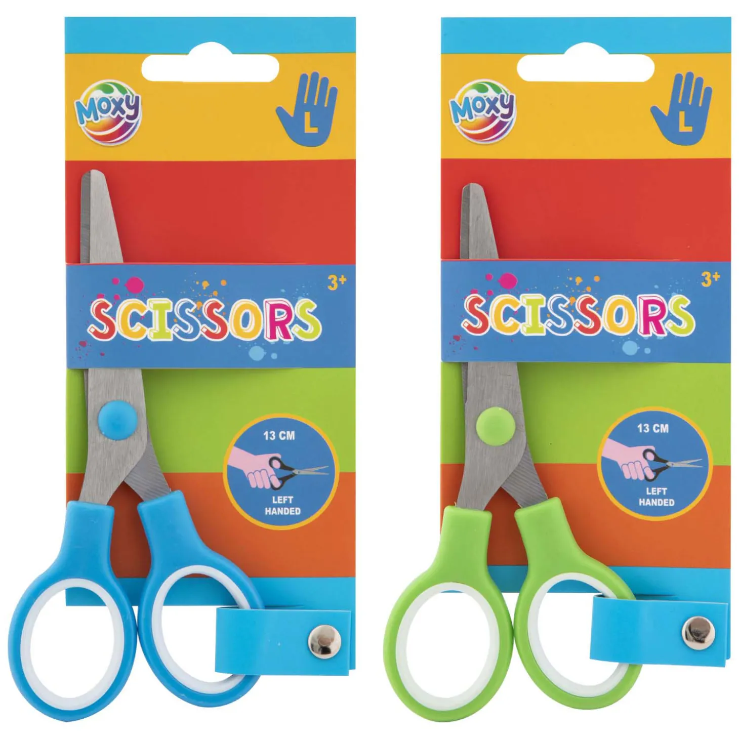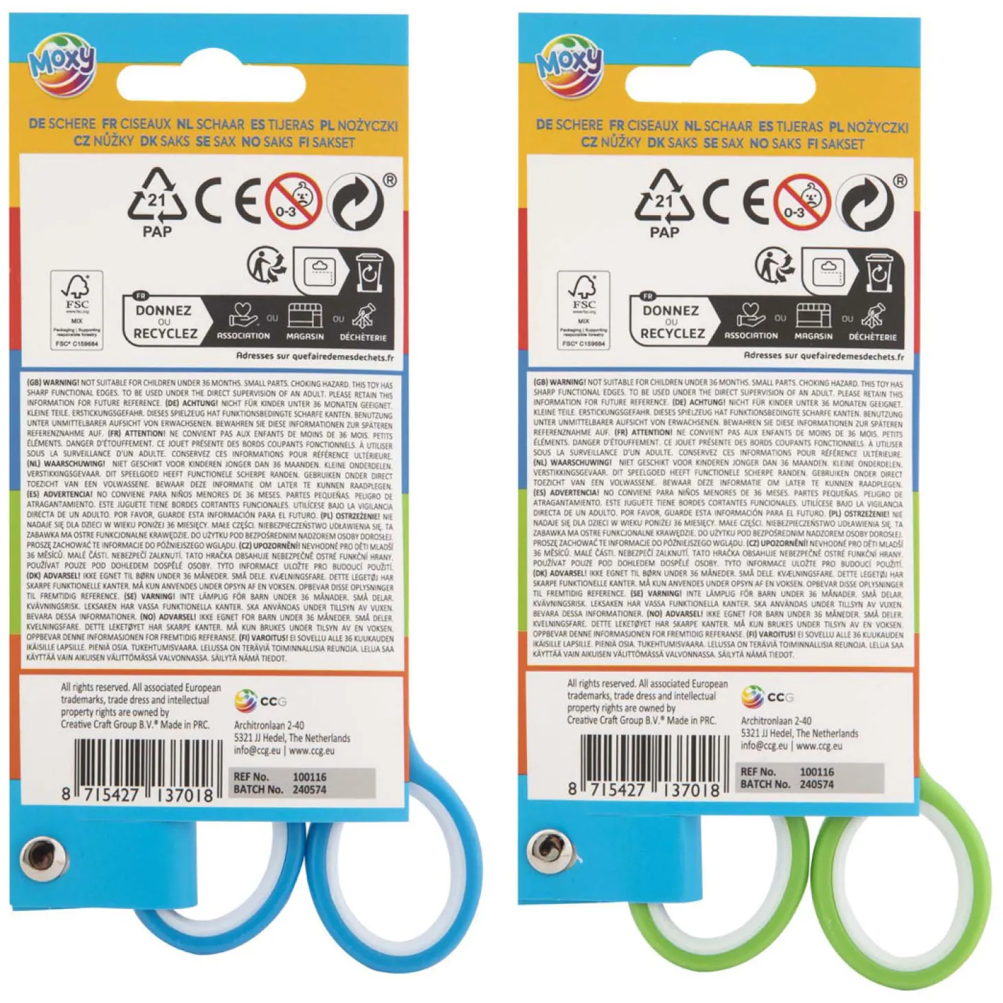 De schaar is 13 cm lang en niet geschikt voor kinderen onder de 3 jaar.Prijs per stuk, verschillende uitvoeringen/kleuren worden door elkaar geleverd.