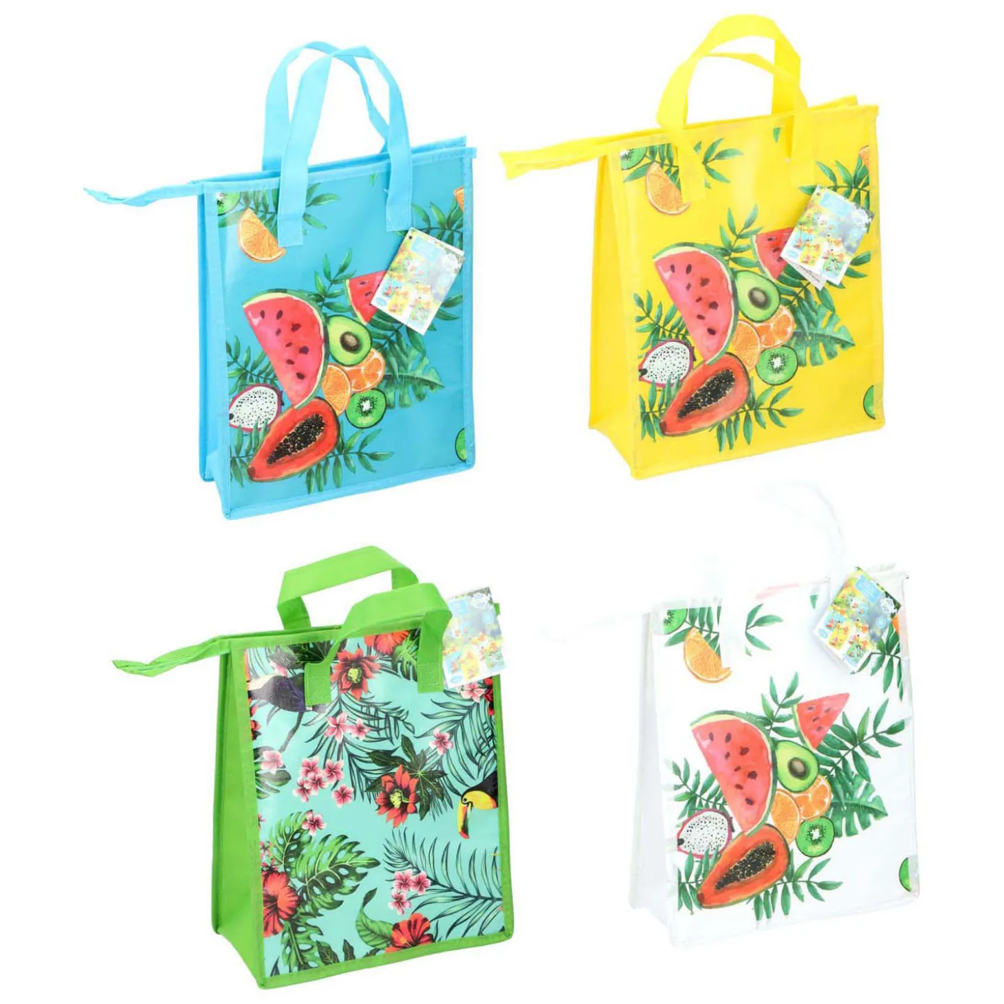 Houd je eten en drinken tijdens een warme dag koel met deze Koeltas Tropical. De koeltas heeft een leuke zomerse opdruk van fruit of tropische bloemen en heeft een inhoud van 8 liter. Genoeg ruimte dus voor al jouw gekoelde drinks en etenswaren.Prijs per stuk, verschillende uitvoeringen/kleuren worden door elkaar geleverd.