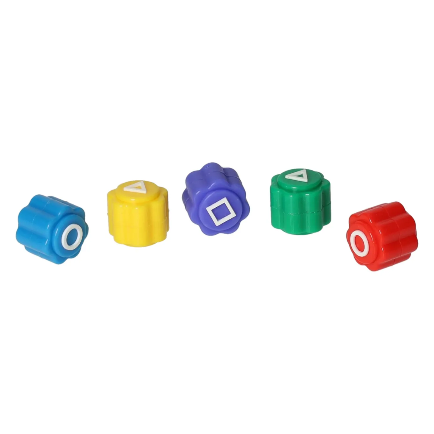 In deze set zitten 5 kunststof dobbelstenen om dit spel mee te spelen, met de bekende symbolen rondje, driehoek en vierkant. Een instructieboekje is inbegrepen in het handige opbergdoosje.