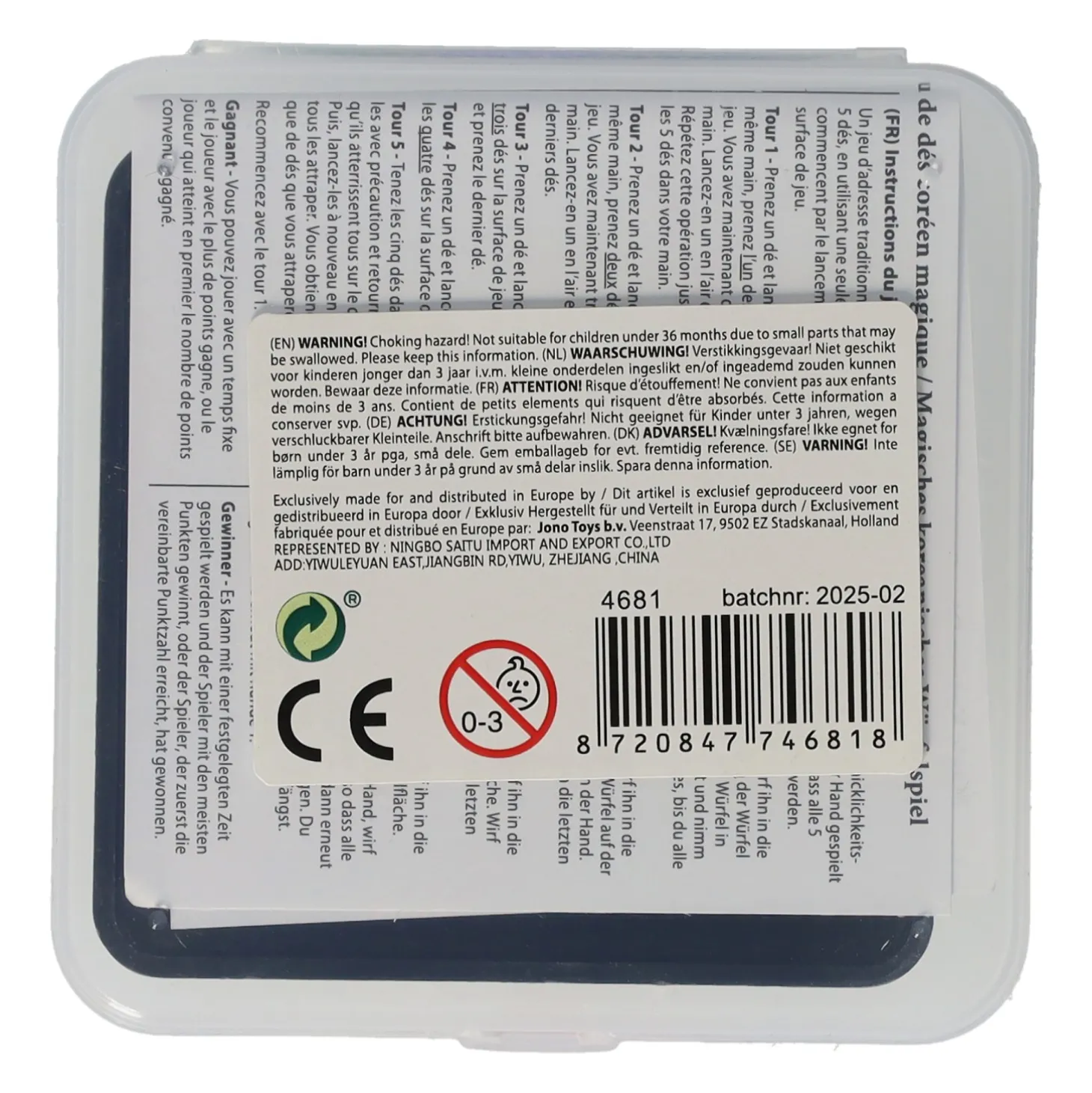 - Waarschuwing: Niet geschikt voor kinderen onder de 3 jaar ivm kleine onderdelen.